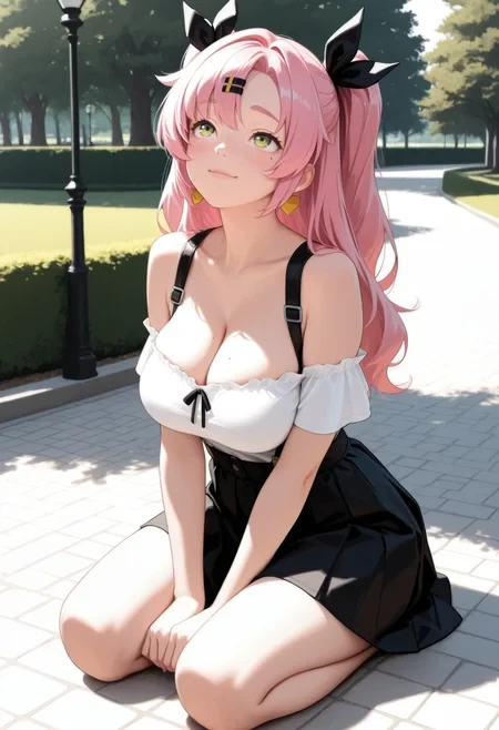 (Positive Prompts) znicole, nicole demara, pink hair, green eyes, large , long hair, parted bangs, twintails, two side up, mole under eye,