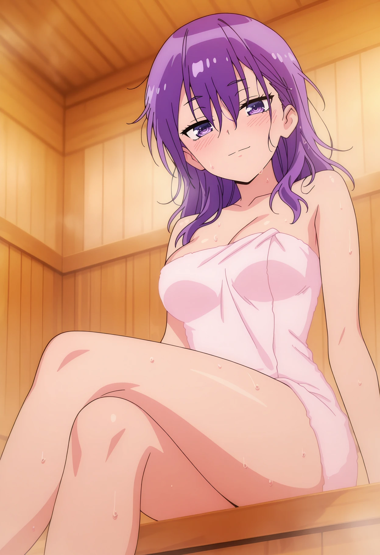 hair between eyes, long hair, purple hair, purple eyes
