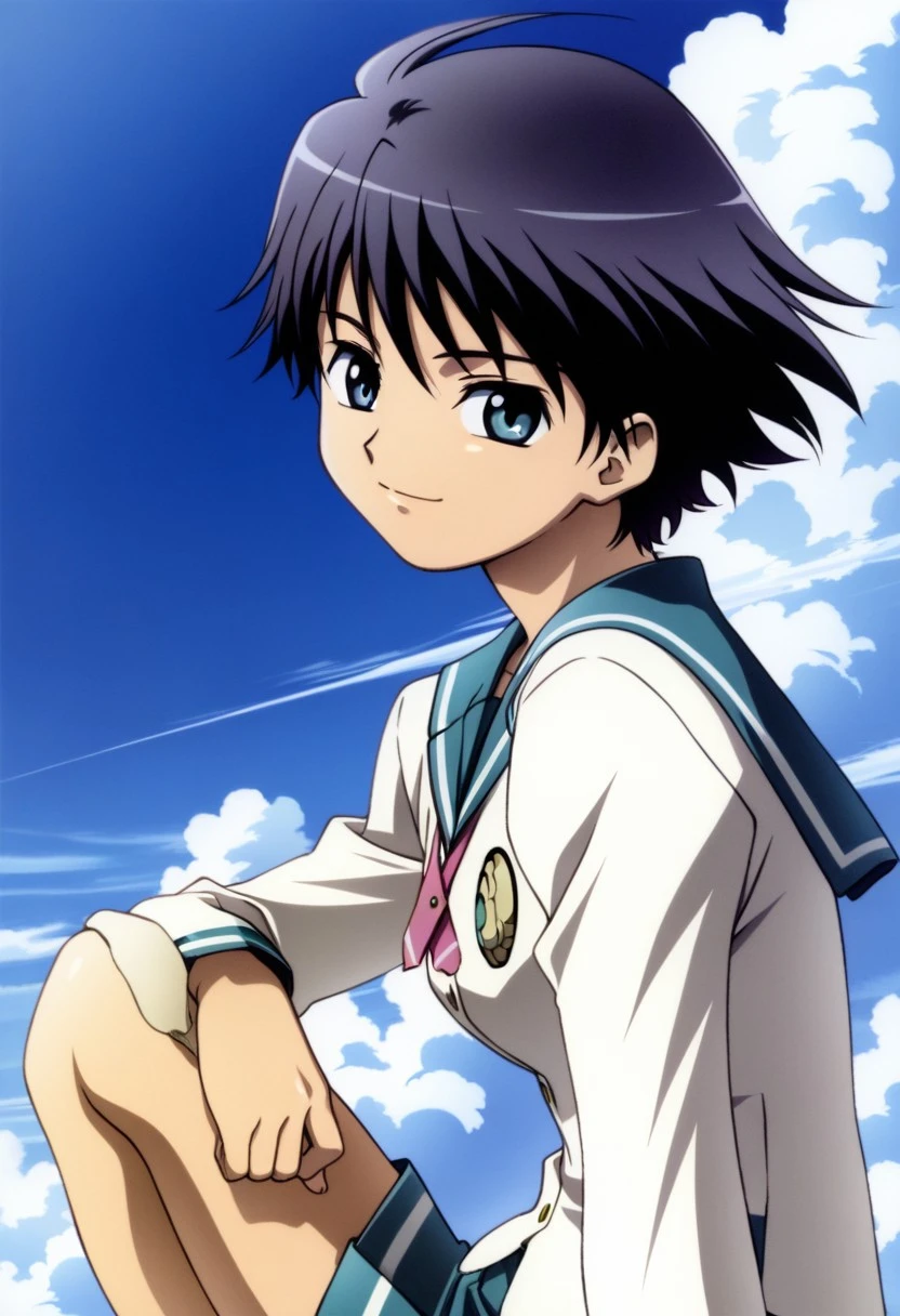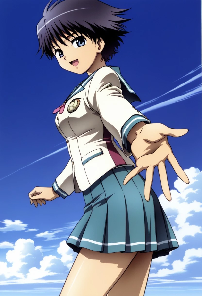 white school blazer, teal sailor collar, pink ribbon tie, teal pleated skirt