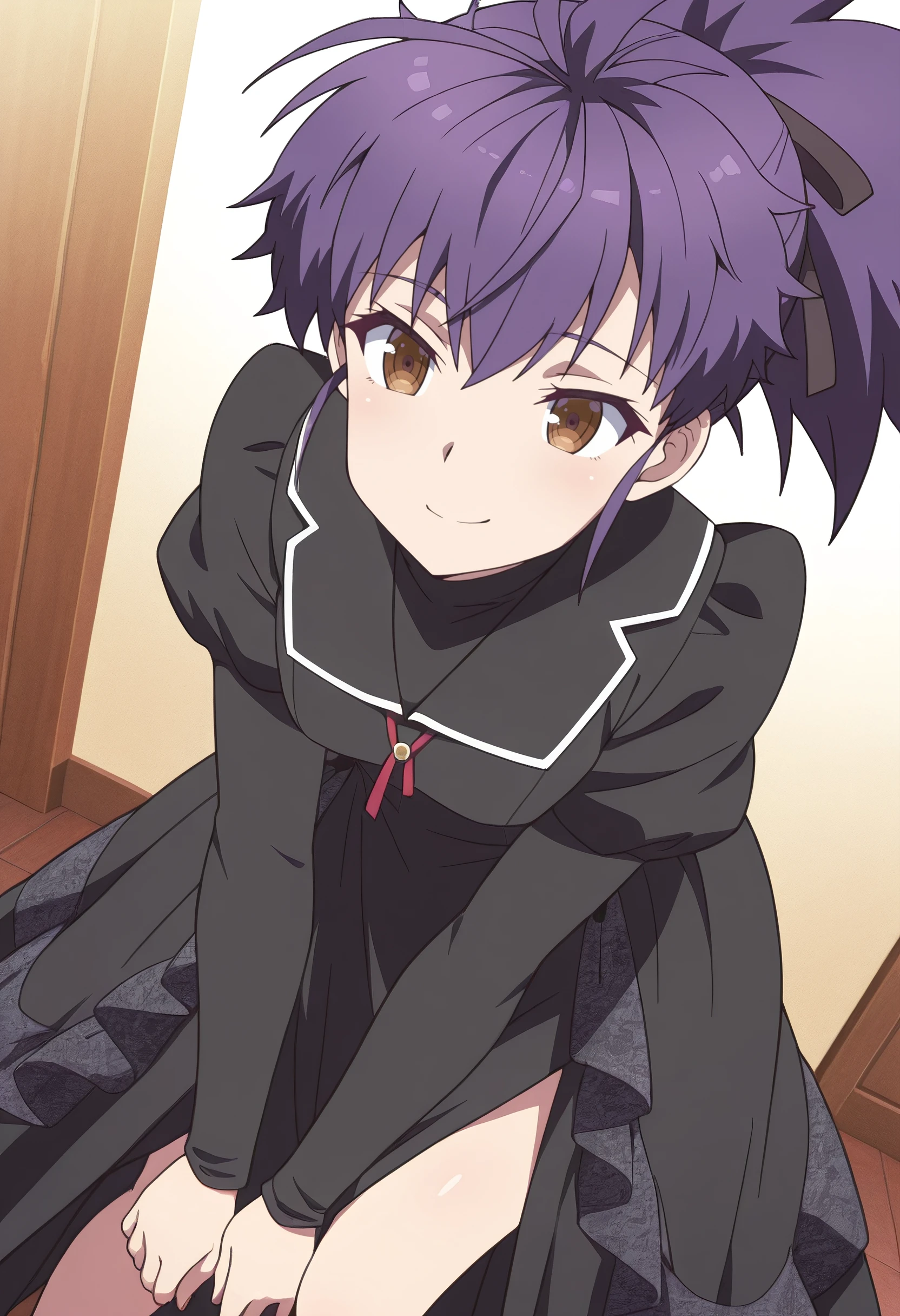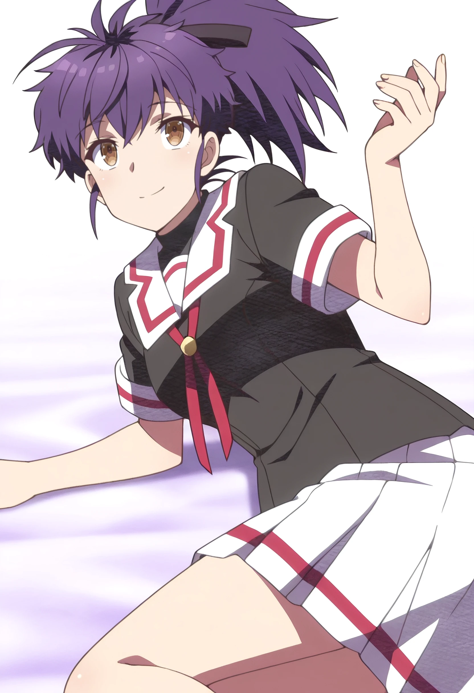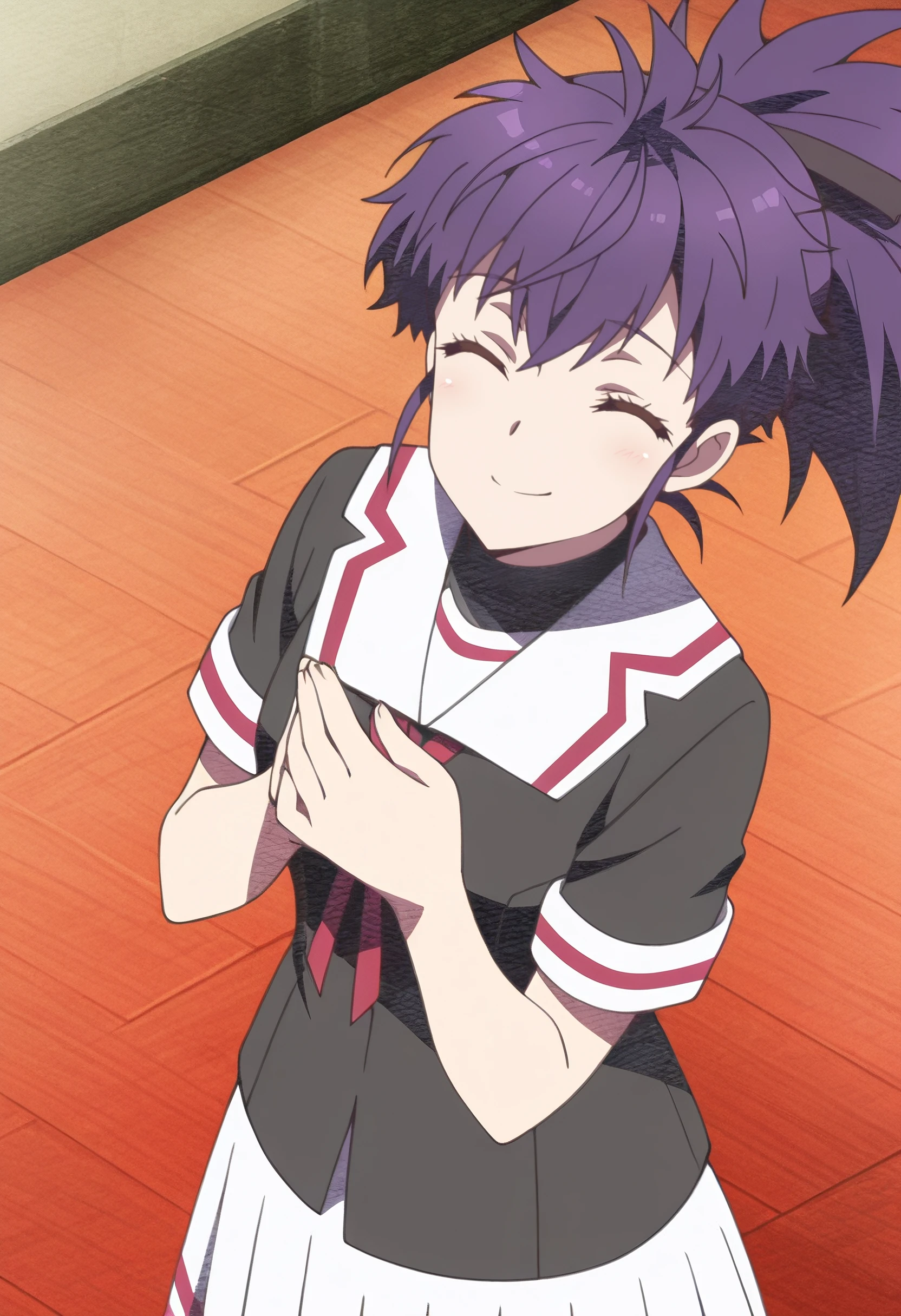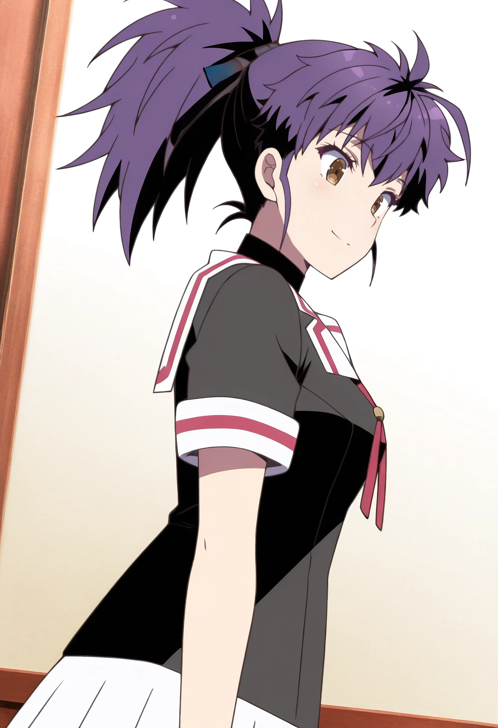TNMMinato, ponytail, purple hair, brown eyes, hair ribbon, short hair, side ponytail,