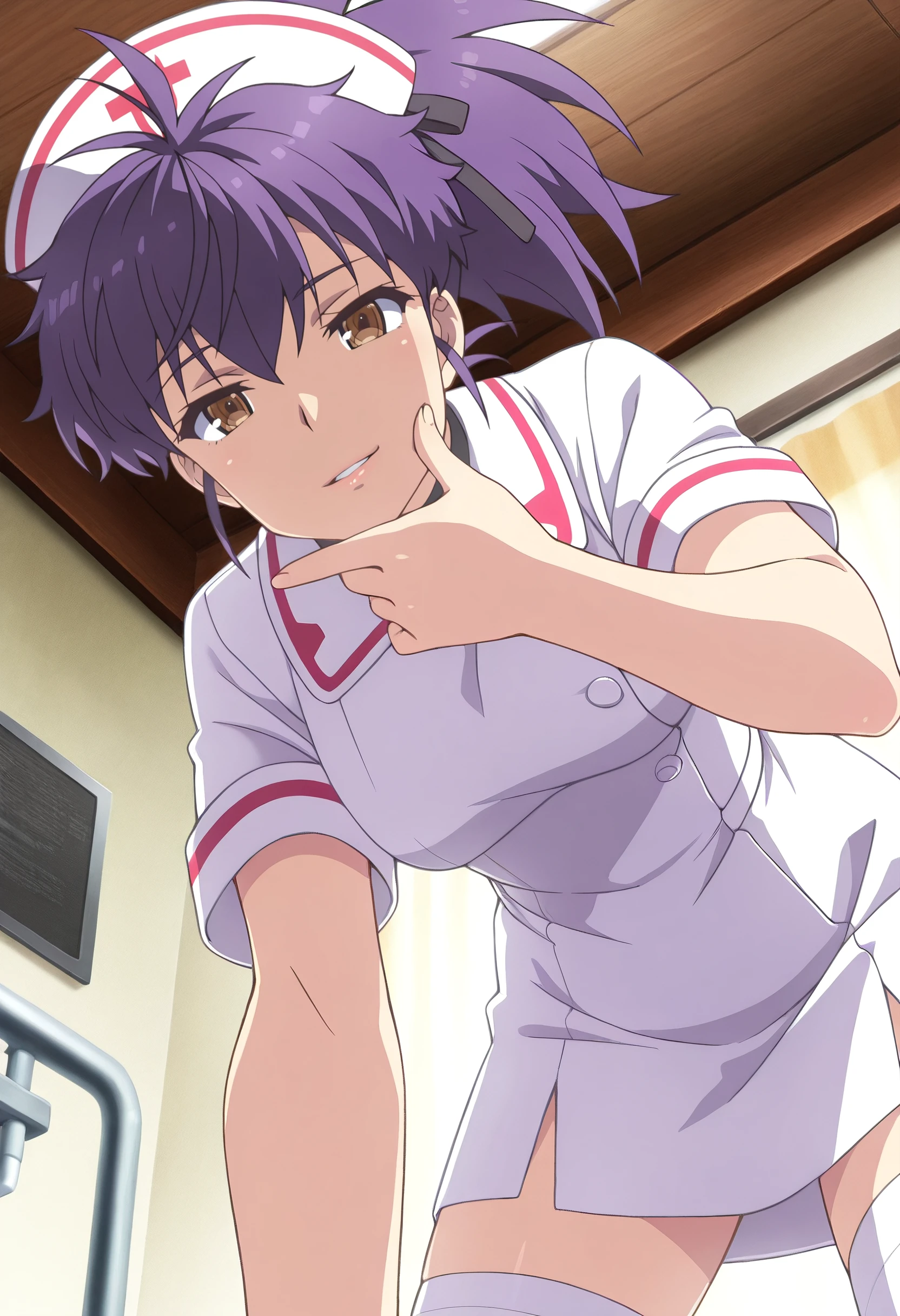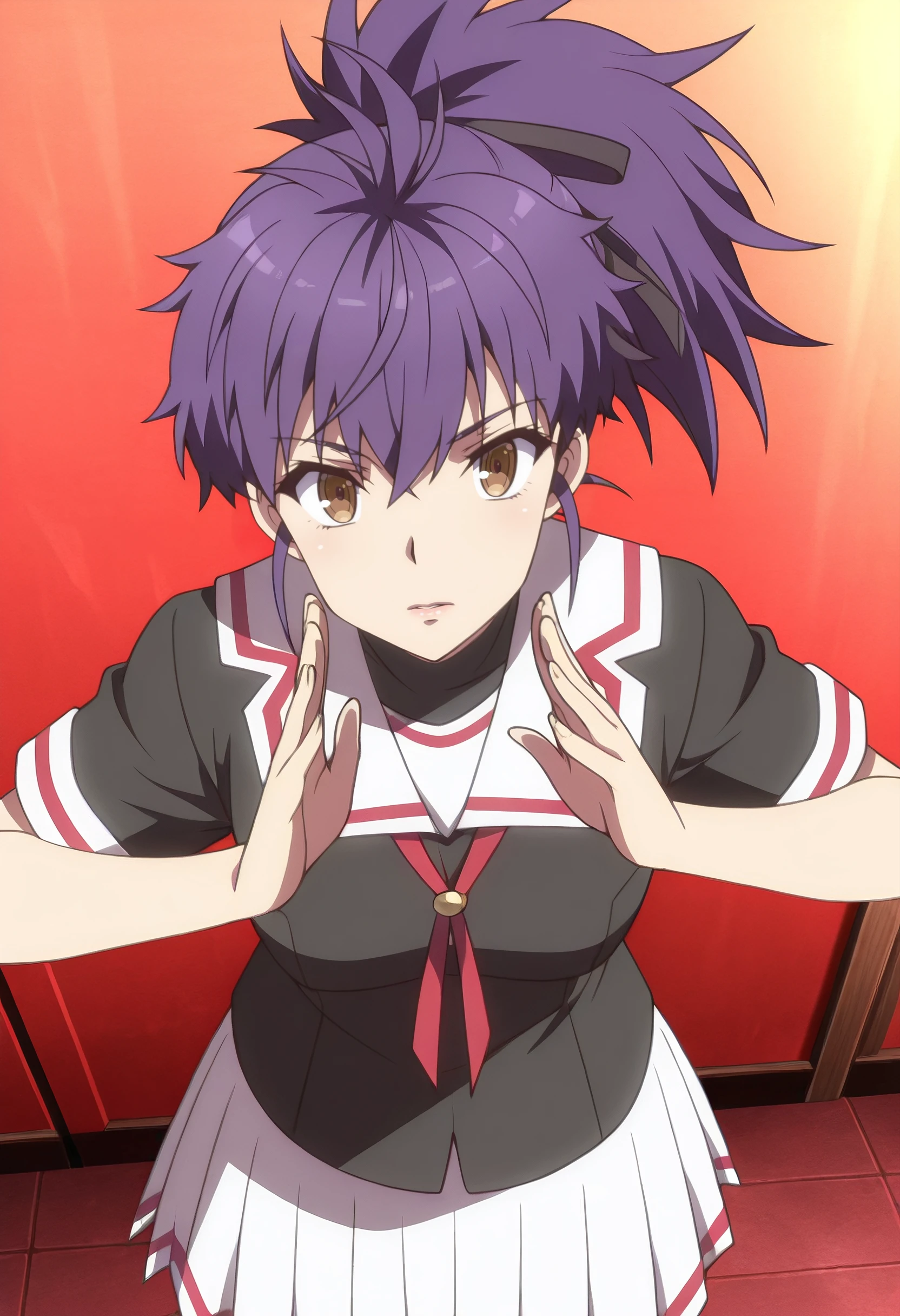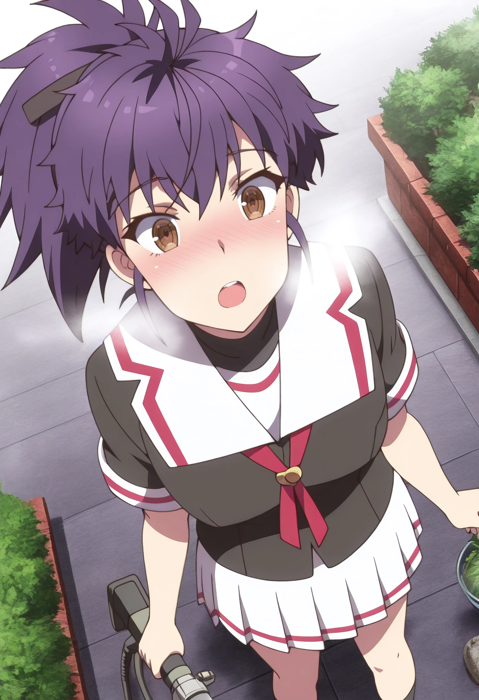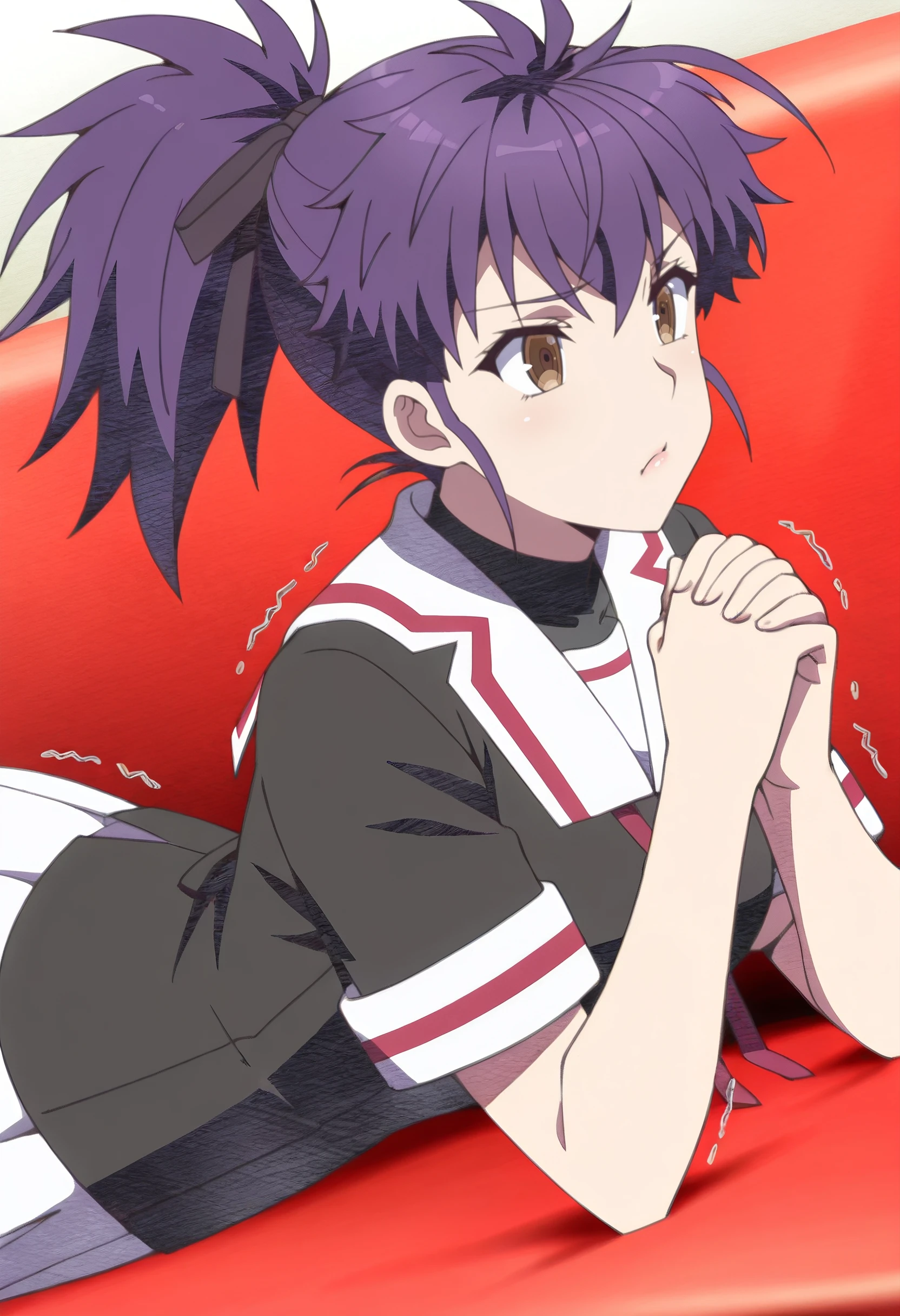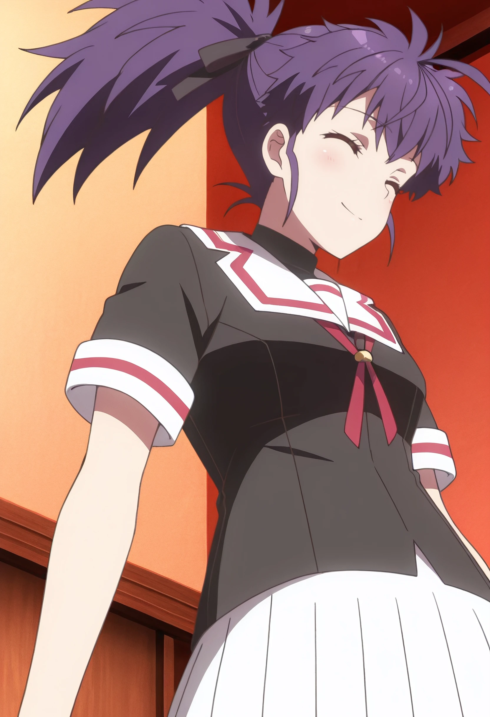 TNMMinato, ponytail, purple hair, brown eyes, hair ribbon, short hair, side ponytail,