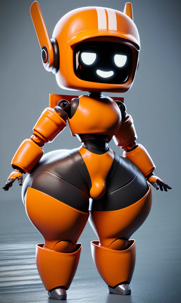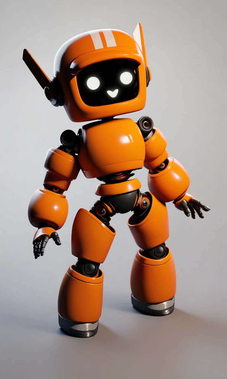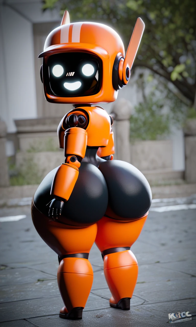 k-vrc, robot, orange robot, screen face, white stripes, antennae