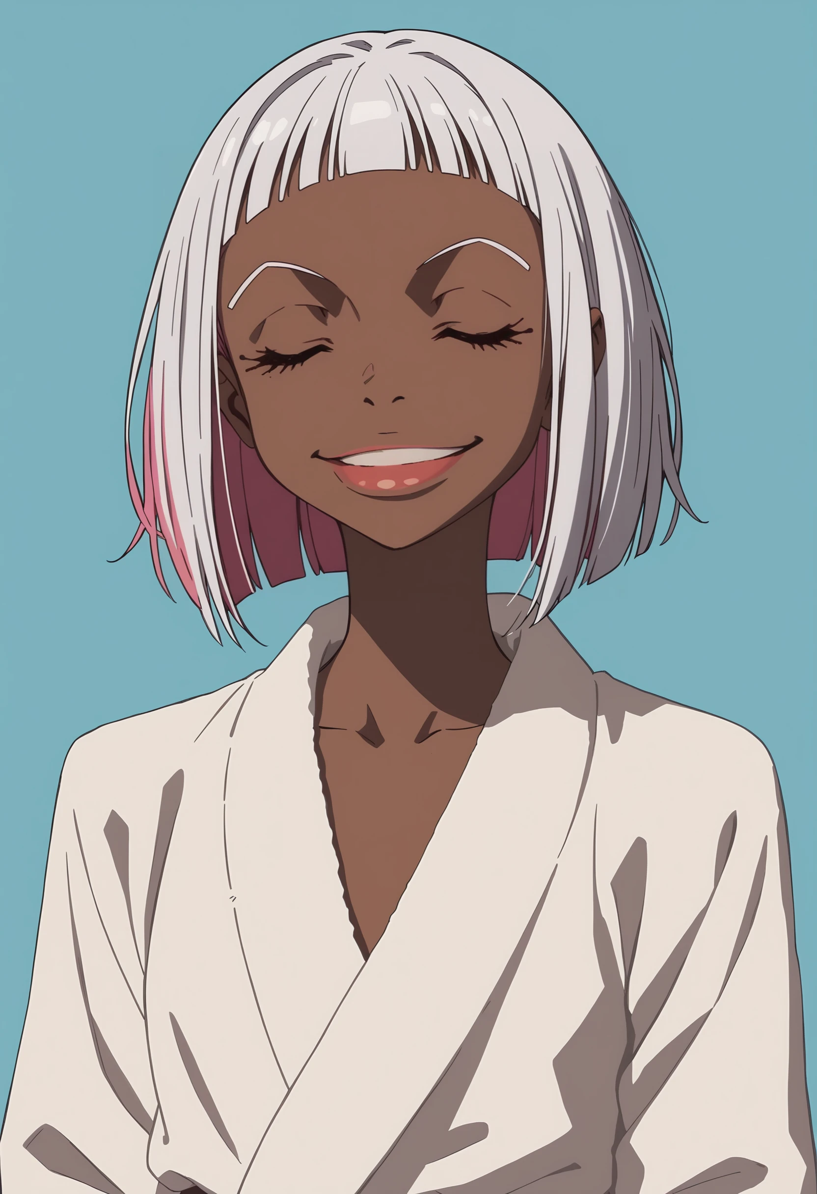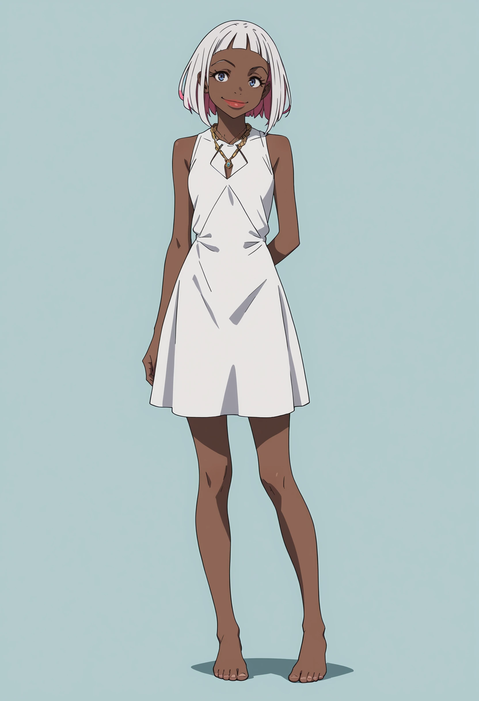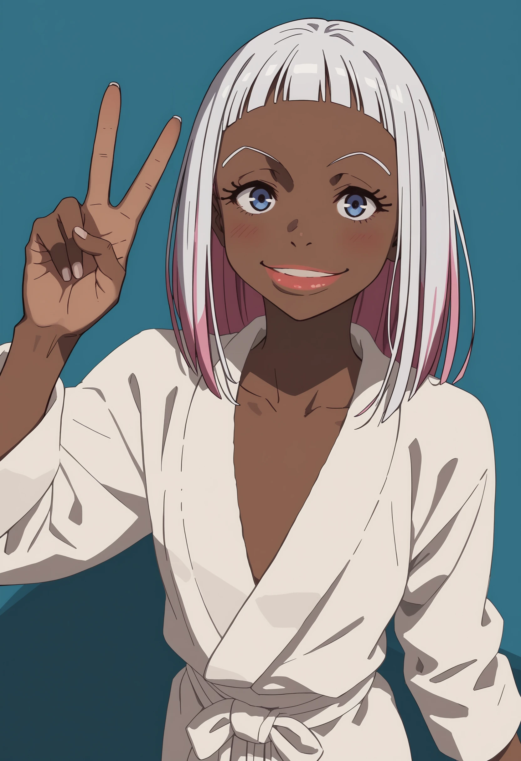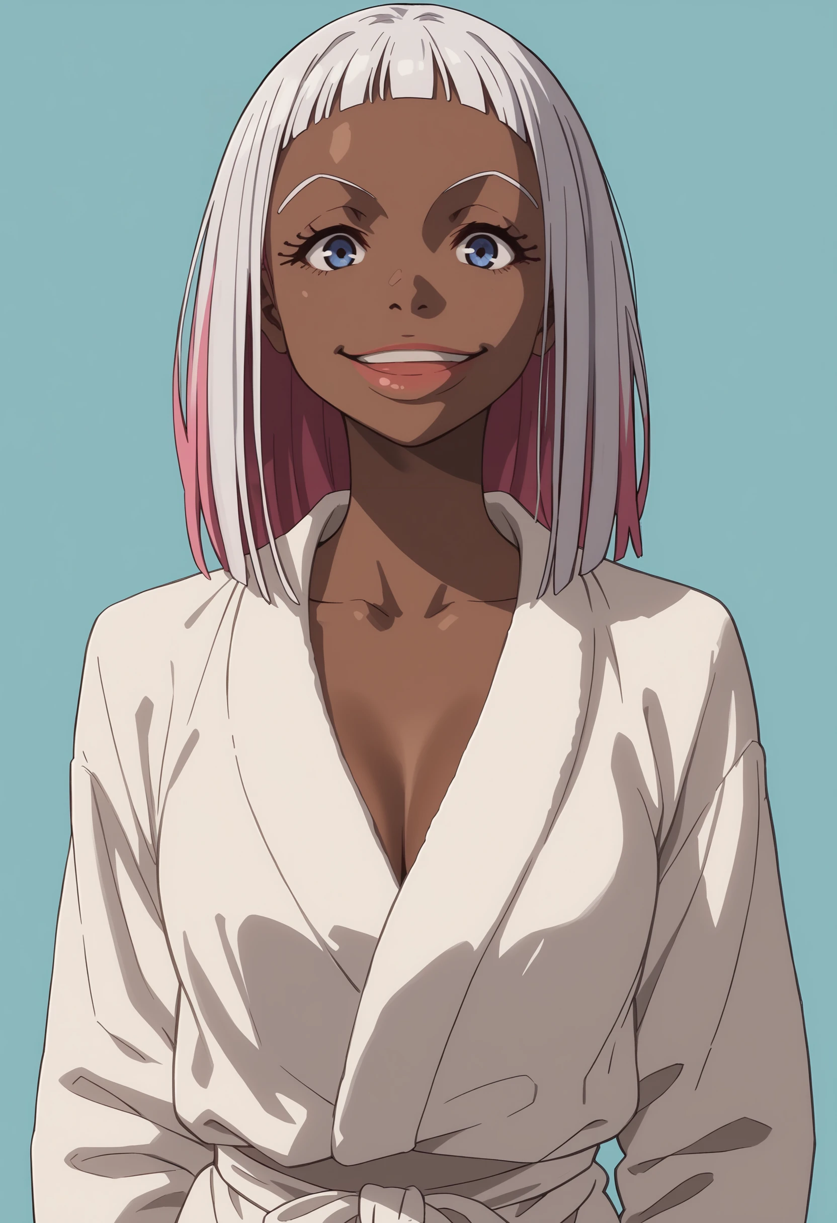 fdorot, 1girl, dark skin, dark-skinned female, short hair, white hair, pink hair, multicolored hair, blue eyes, lips
