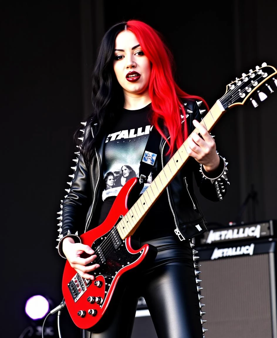 Adding "red and black hair" to the prompt might help if her hair is not coming out correctly.