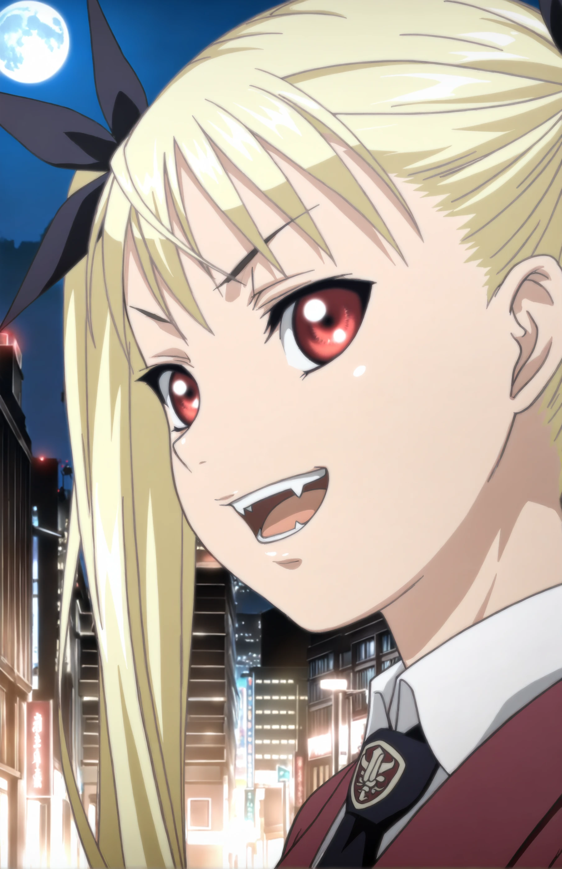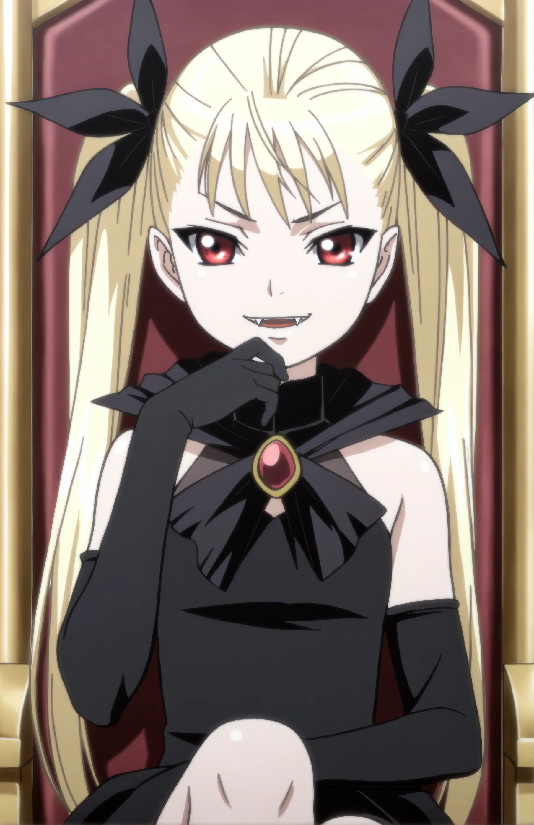 LoRA for Mina Tepes, from Dance in the Vampire Bund by Tamaki Nozomu. Recommended weight: 0.9. Trigger word: MinaTepes. Prompt for school outfit: school uniform, crimson jacket, necktie, pleated skirt, dark blue skirt. Prompt for black dress outfit: gothic, black dress, elbow gloves.