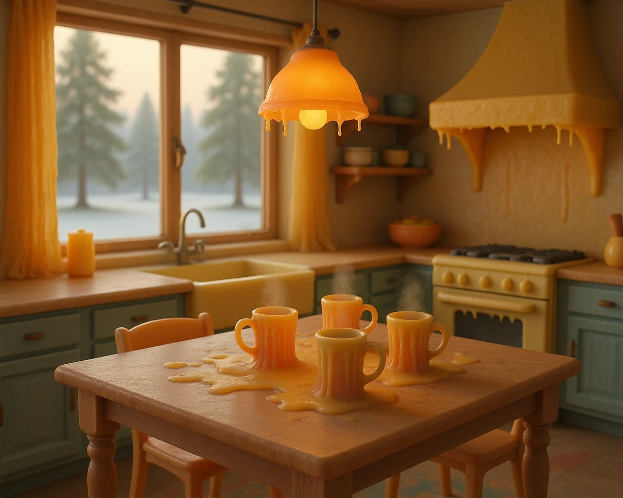 Dripping forms. Soft decay. Welcome to a realm where heat blurs the edges of reality.