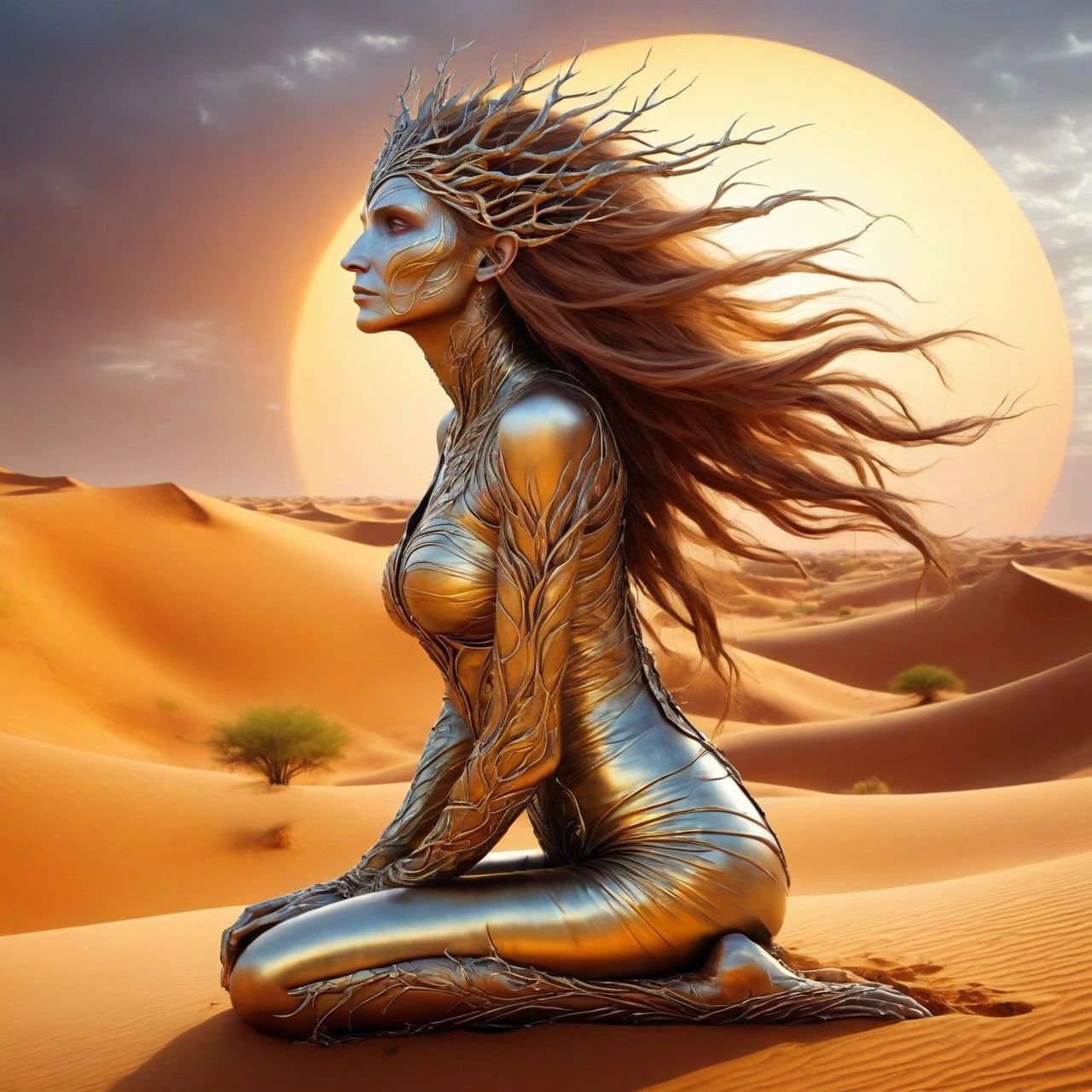 Long prompts should usually metallise the main subject - could be converted, could be clothing, could be various items around the image.
