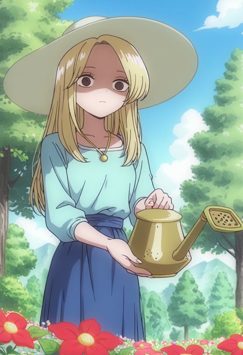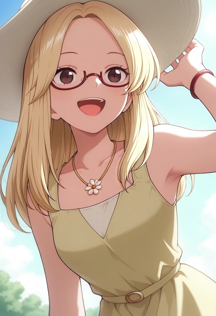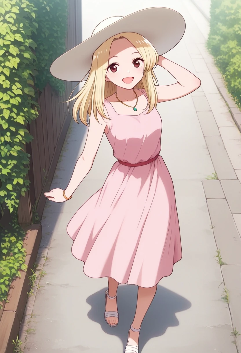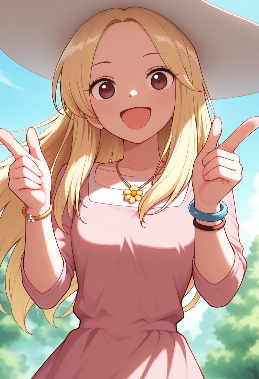 trigger words: kayaflashback, 1girl, blonde hair, long hair, brown eyes, necklace