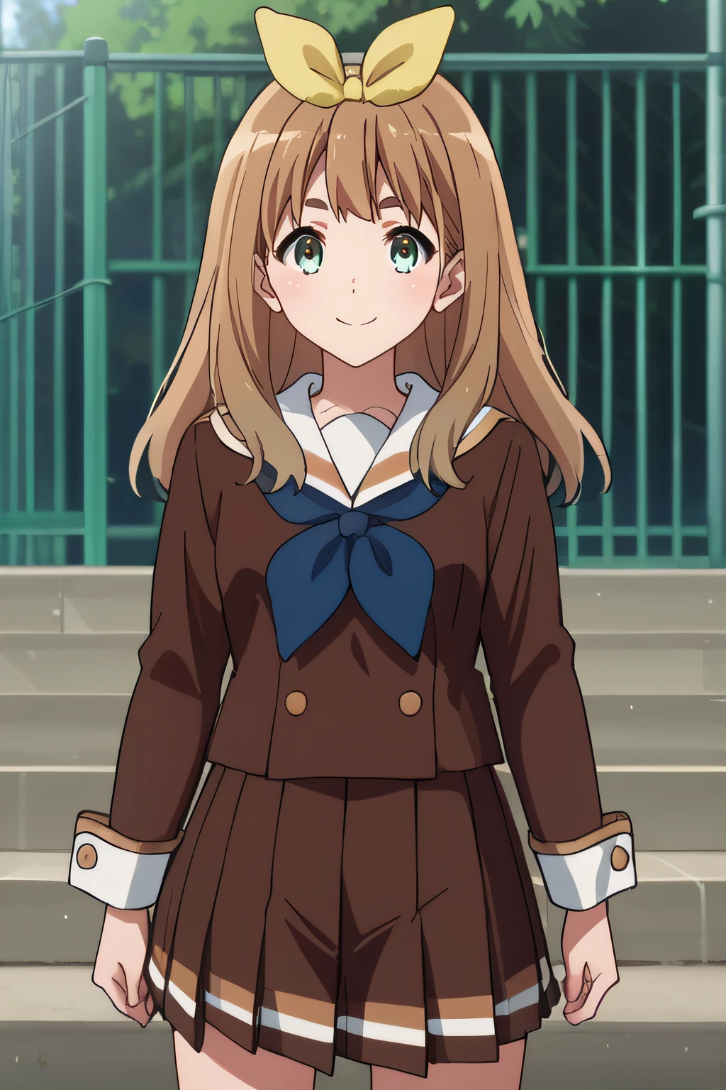 yuuko, brown hair, green hair, yellow_hair_ribbon