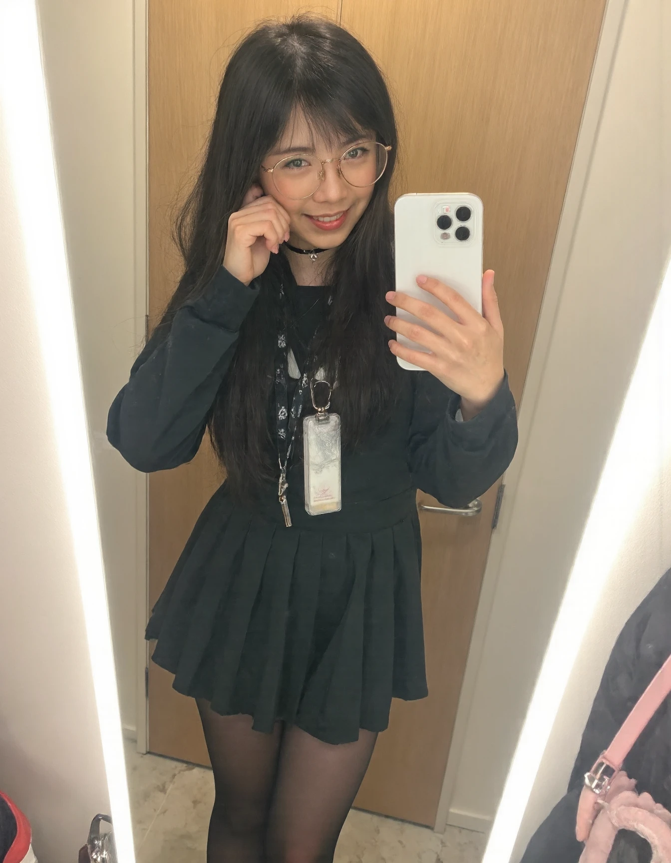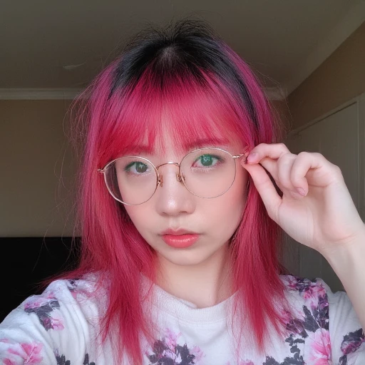 Best to use like "Lil1P1chu with round glasses with long black hair styled in soft waves"