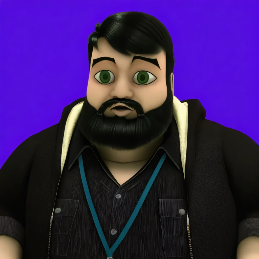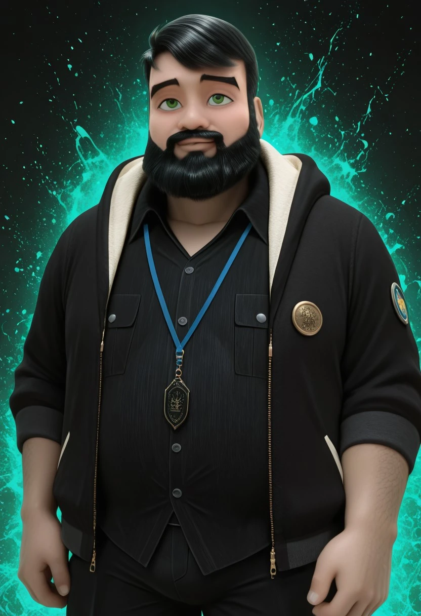 MLthomasastruc, chubby man, fat man, dark-green eyes, black hair, black mustache, black beard,