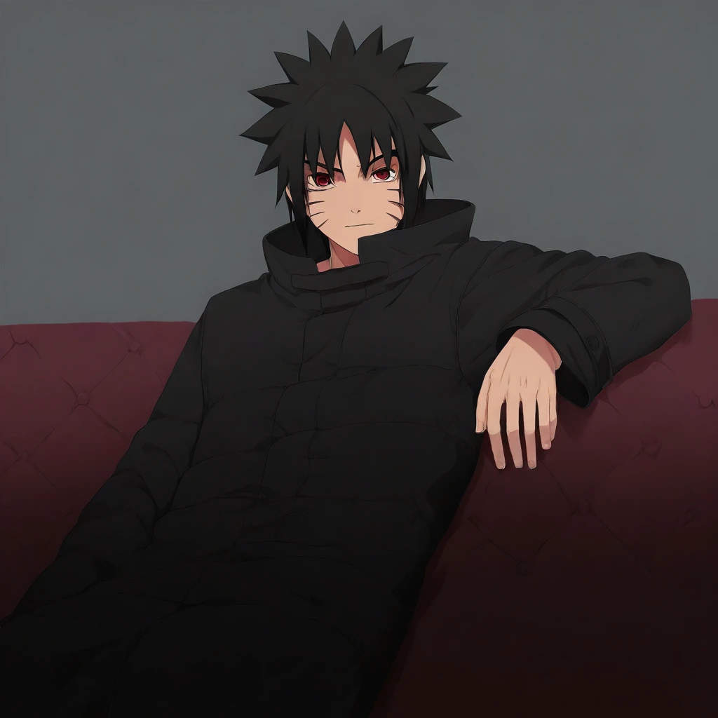 Menma, male focus, black hair, short hair, spiked hair, red eyes, facial mark,