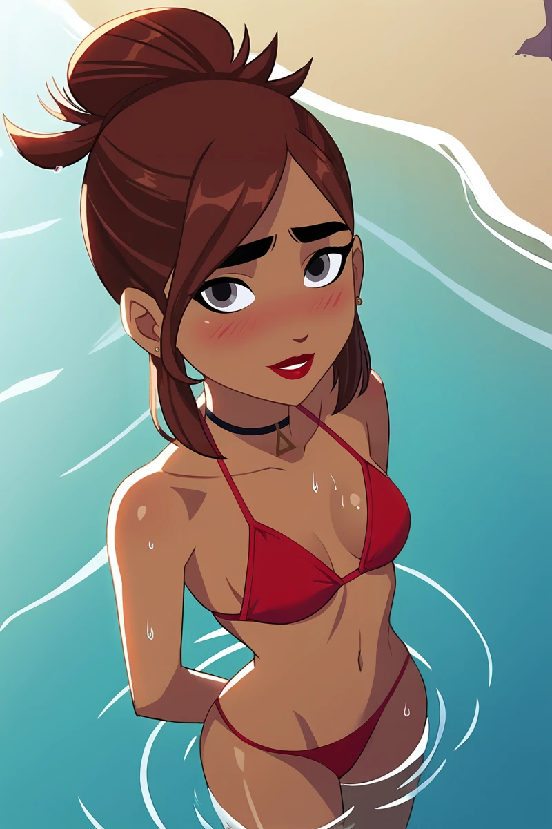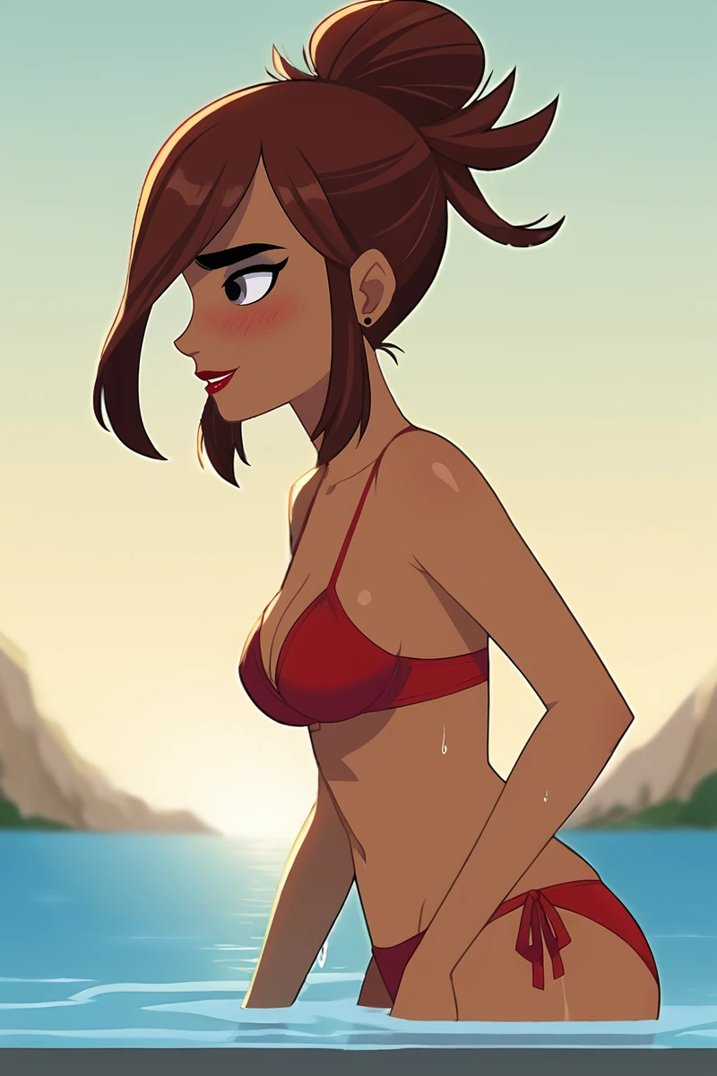 Base Prompt: 1girl, solo, dark skin, dark-skinned female, grey eyes, brown hair, makeup, lipstick, stud earrings