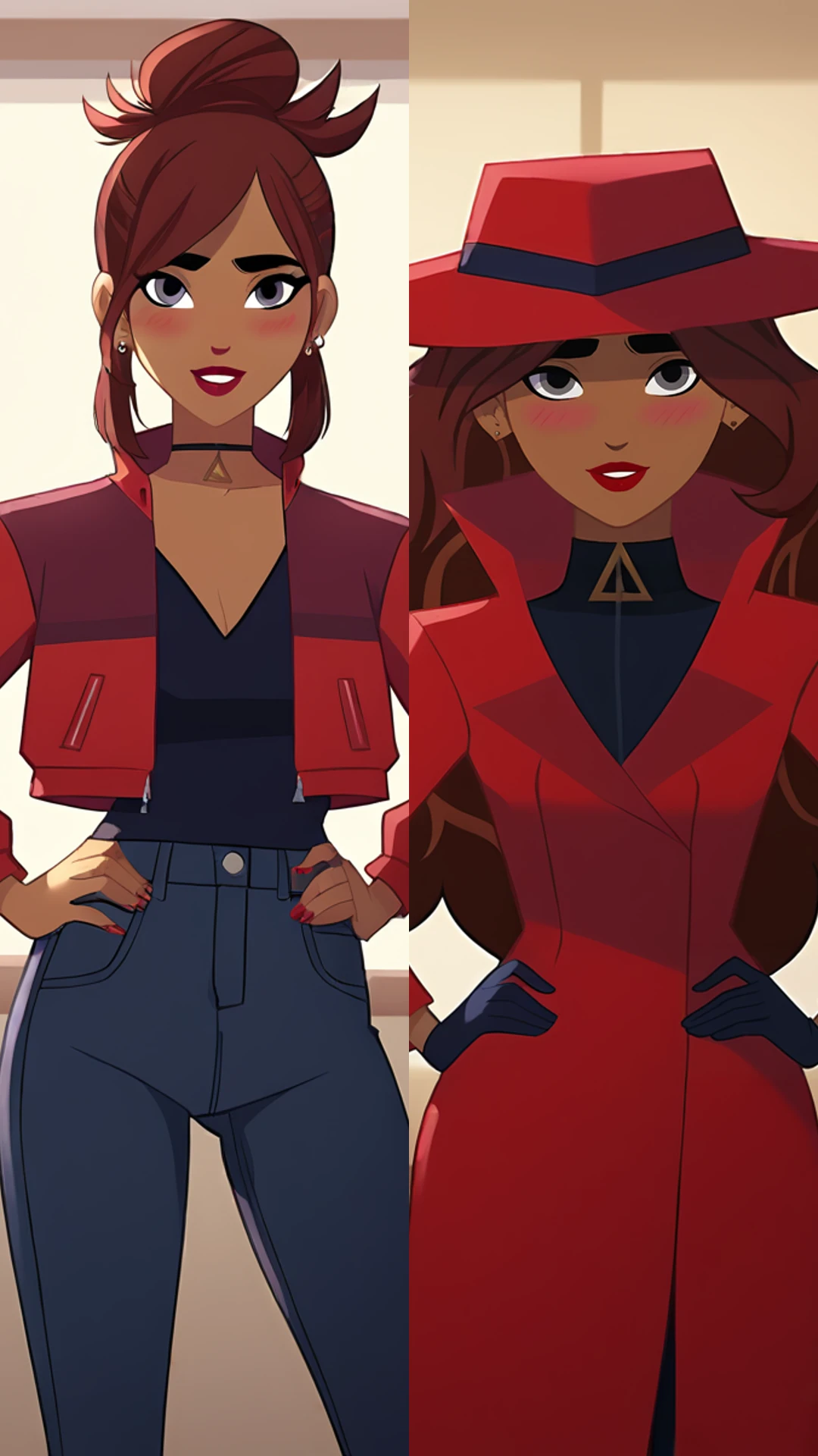Basic outfit trigger: long hair, wavy hair, red headwar, hat, red coat, long coat, black gloves, high heel boots, black footwear