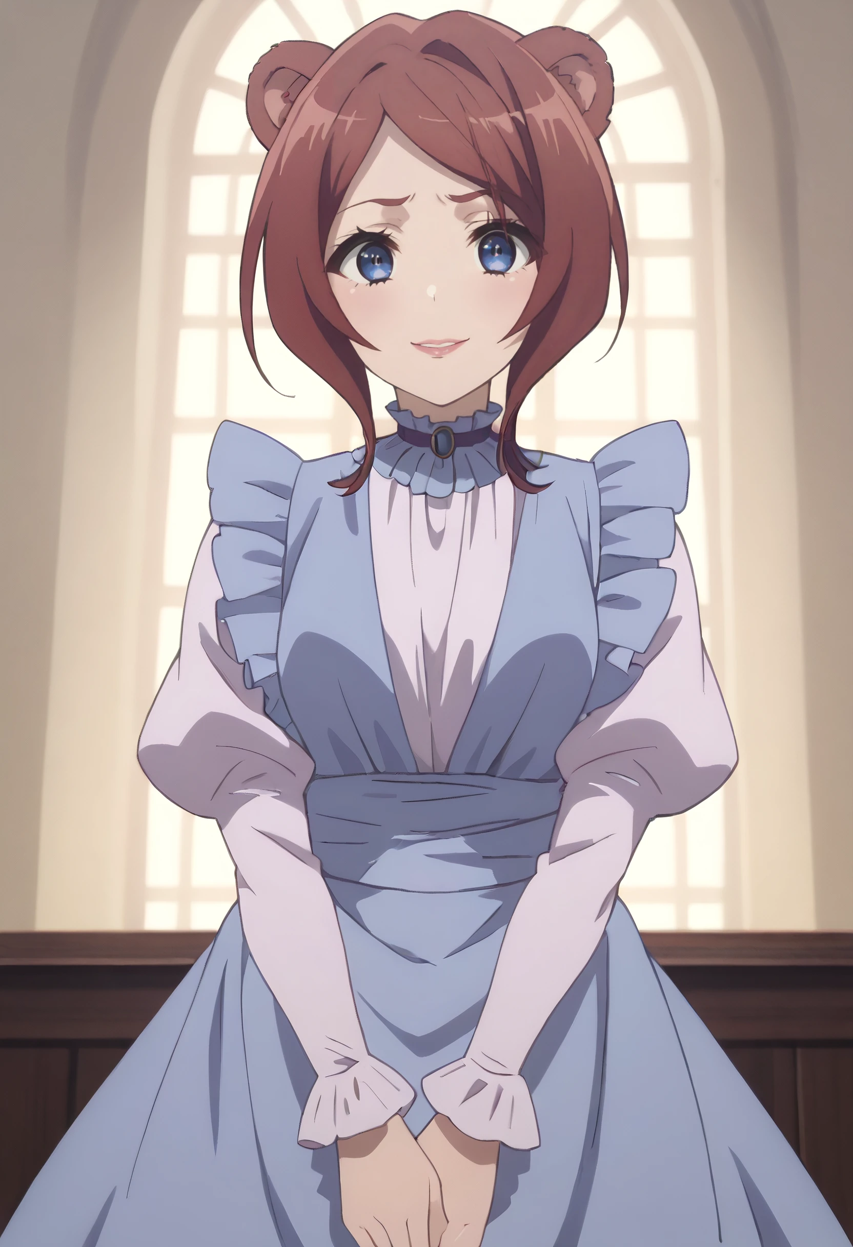 dress, frills, long sleeves, apron, maid, maid apron, puffy sleeves, choker,