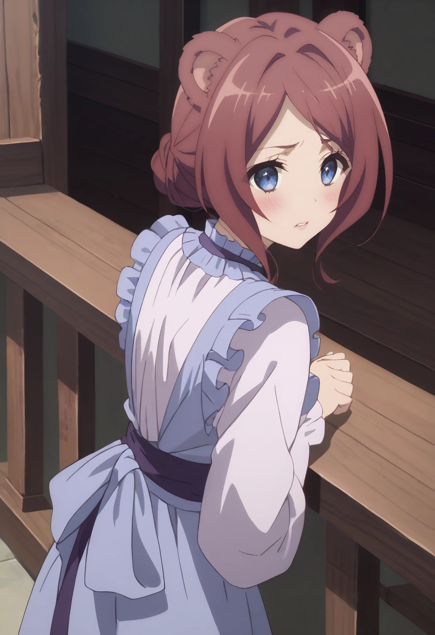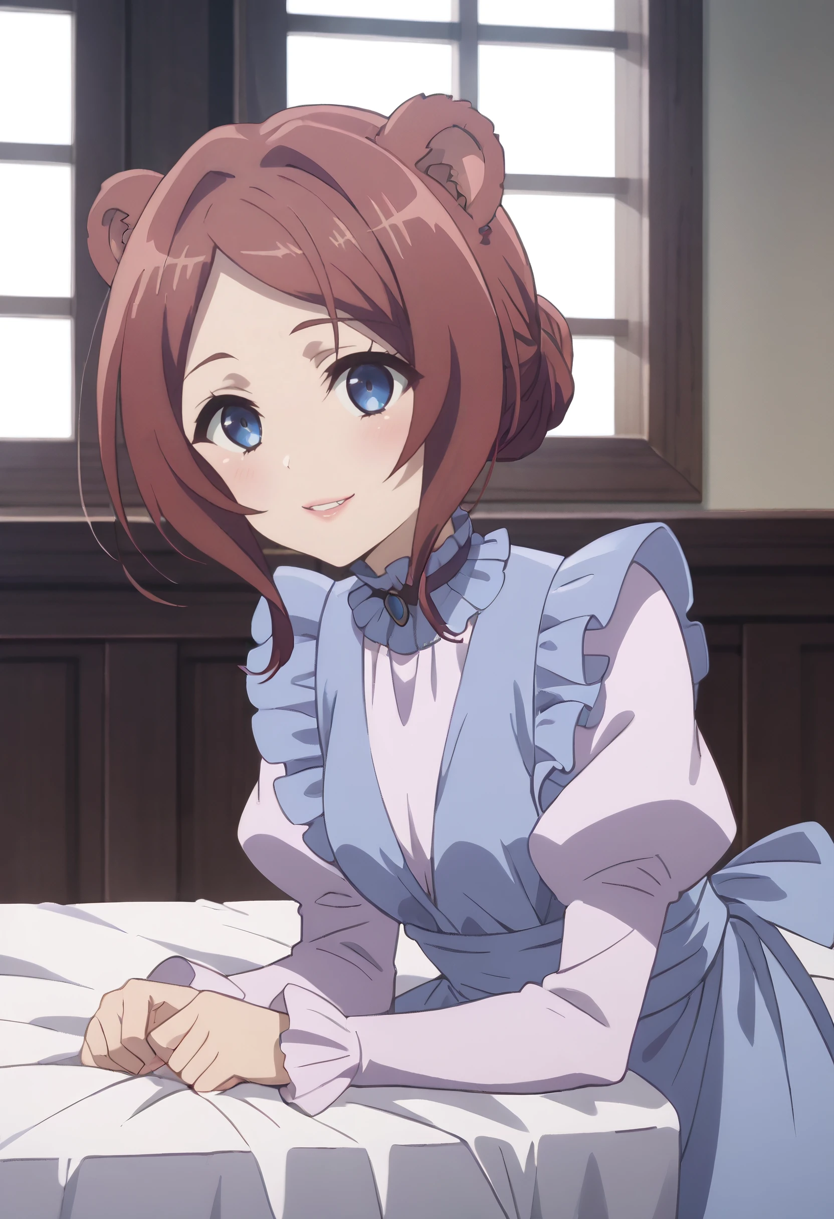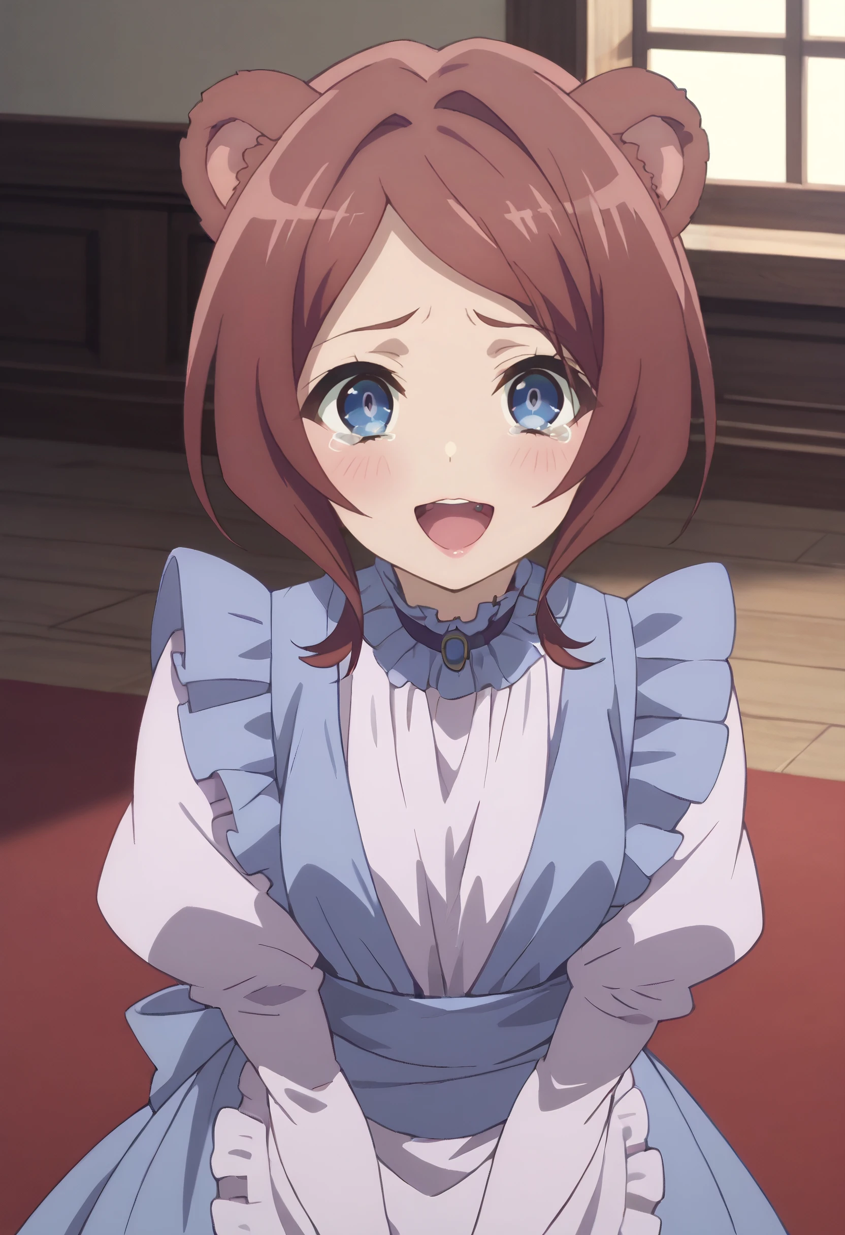 CKWEmerada, short hair, animal ears, brown hair, bangs, blue eyes, long hair, swept bangs, parted bangs, bear ears, bear girl, bear tail,