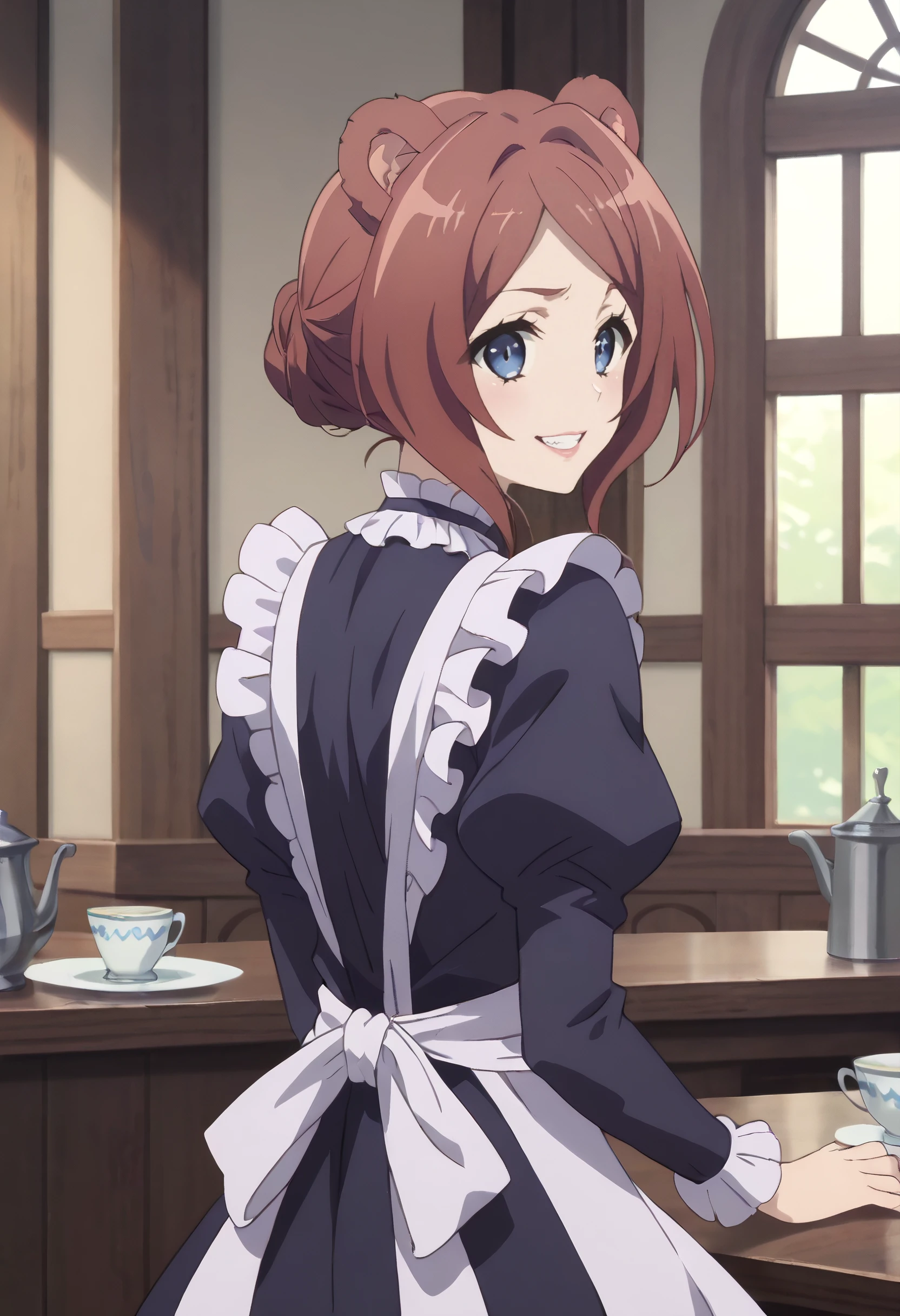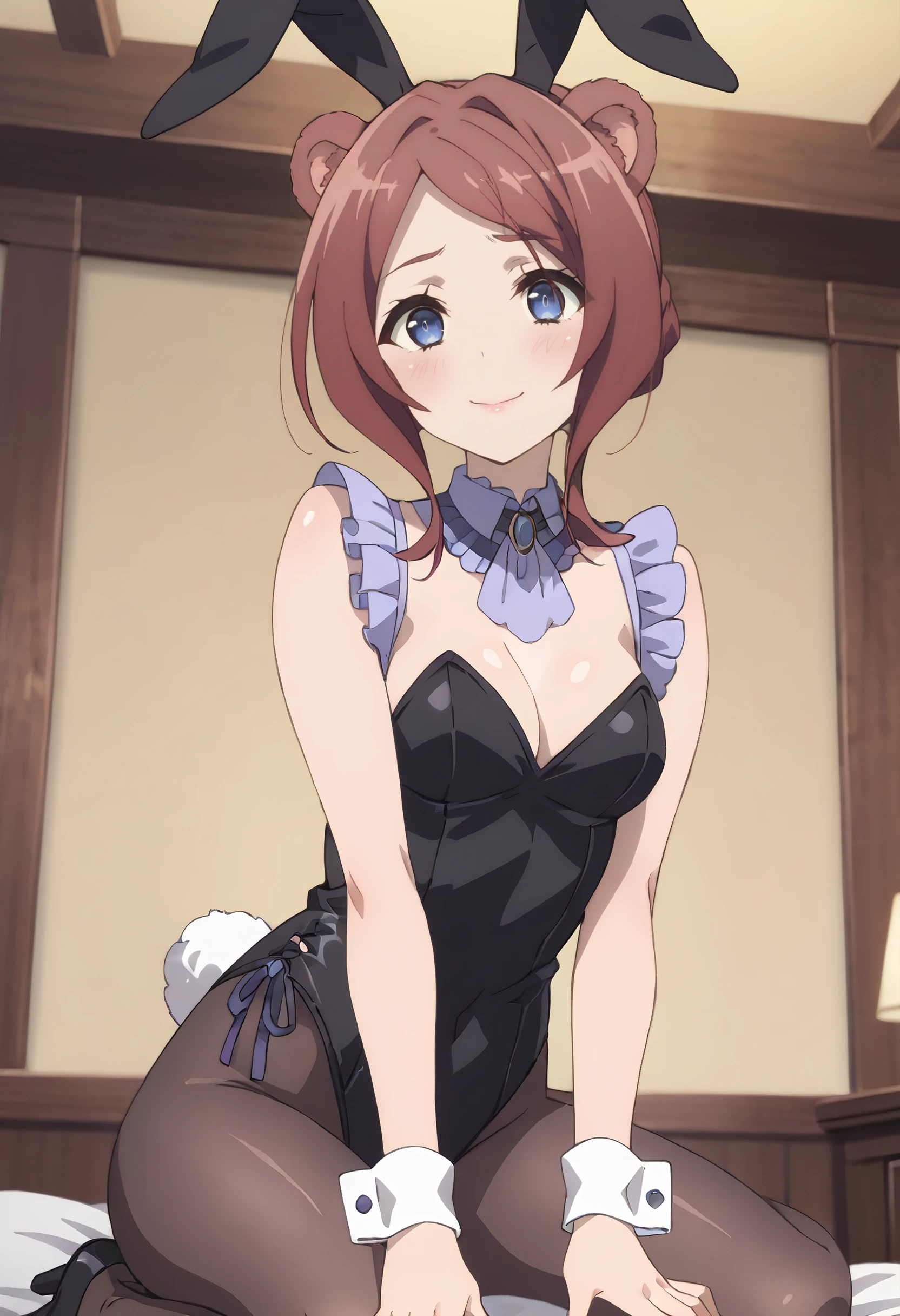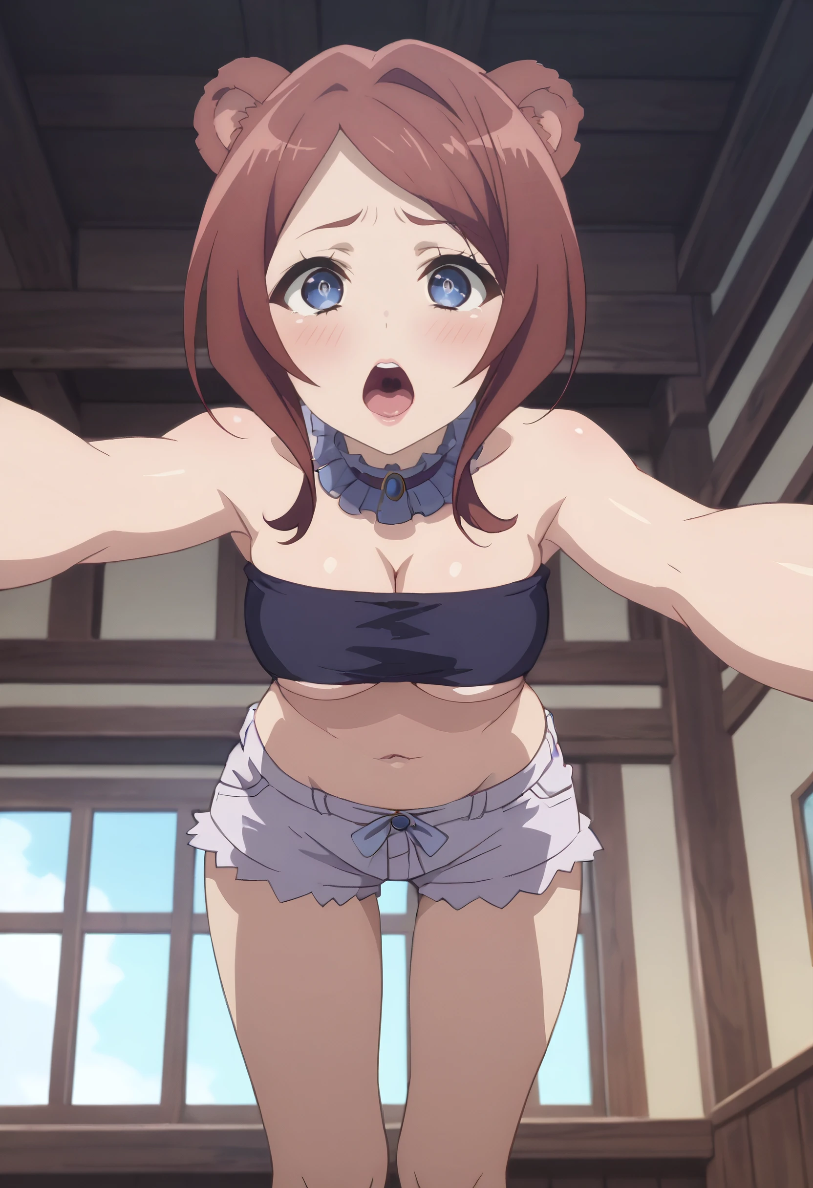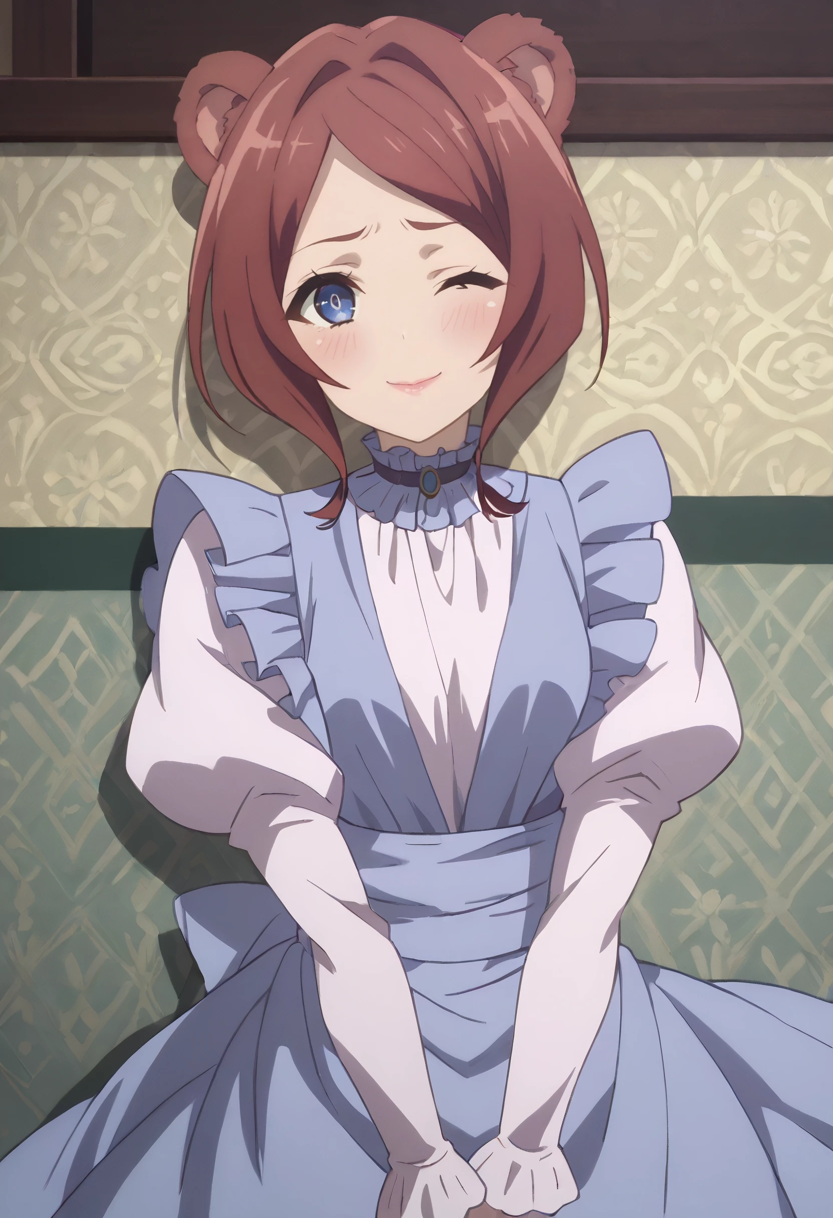 CKWEmerada, short hair, animal ears, brown hair, bangs, blue eyes, long hair, swept bangs, parted bangs, bear ears, bear girl, bear tail,