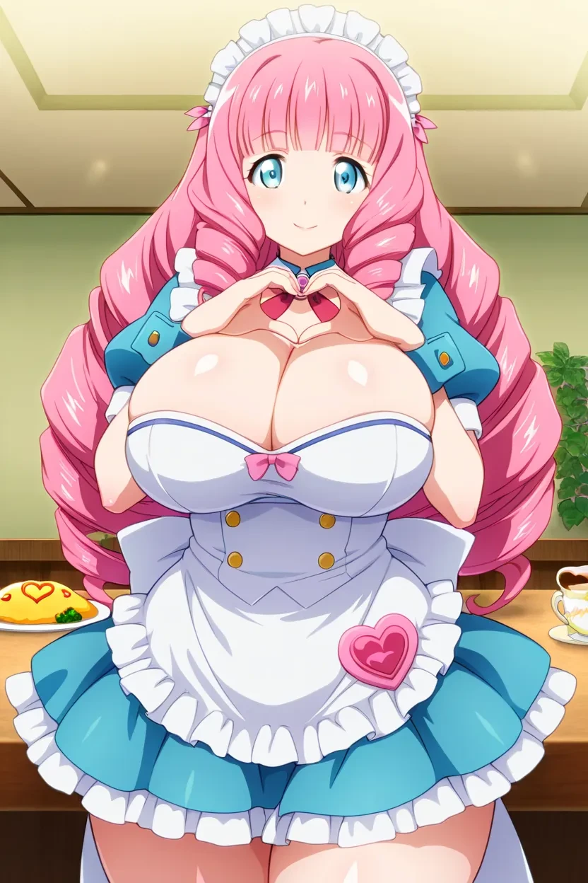 1girl, Utea Grace (Majuu Jouka Shoujo Utea) solo, aqua_blue_eyes, long_hair, pink_hair, looking_at_viewer, drill_hair, hot body curvy body, sexy body, sexy figure, voluptuous body, curves in all the right places, large_breasts, huge breasts, sexy thighs, thick thighs, wide hips, High Resolution, HD, 8k