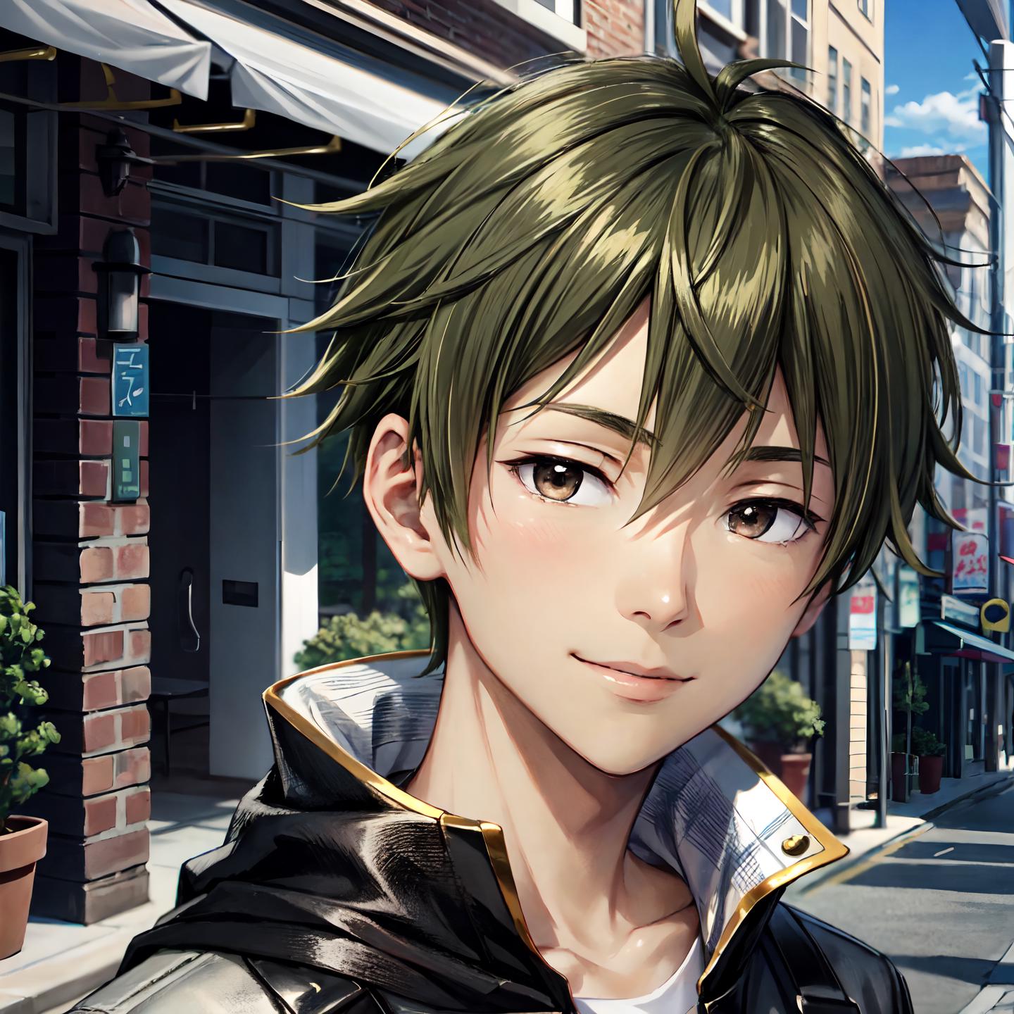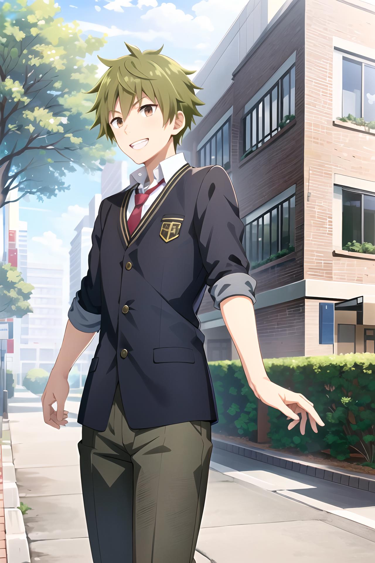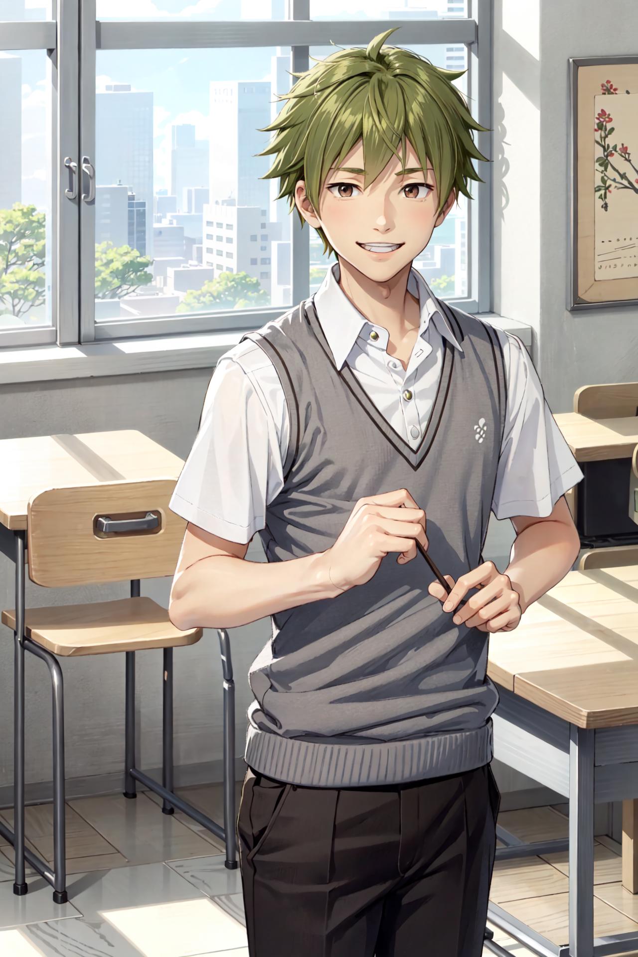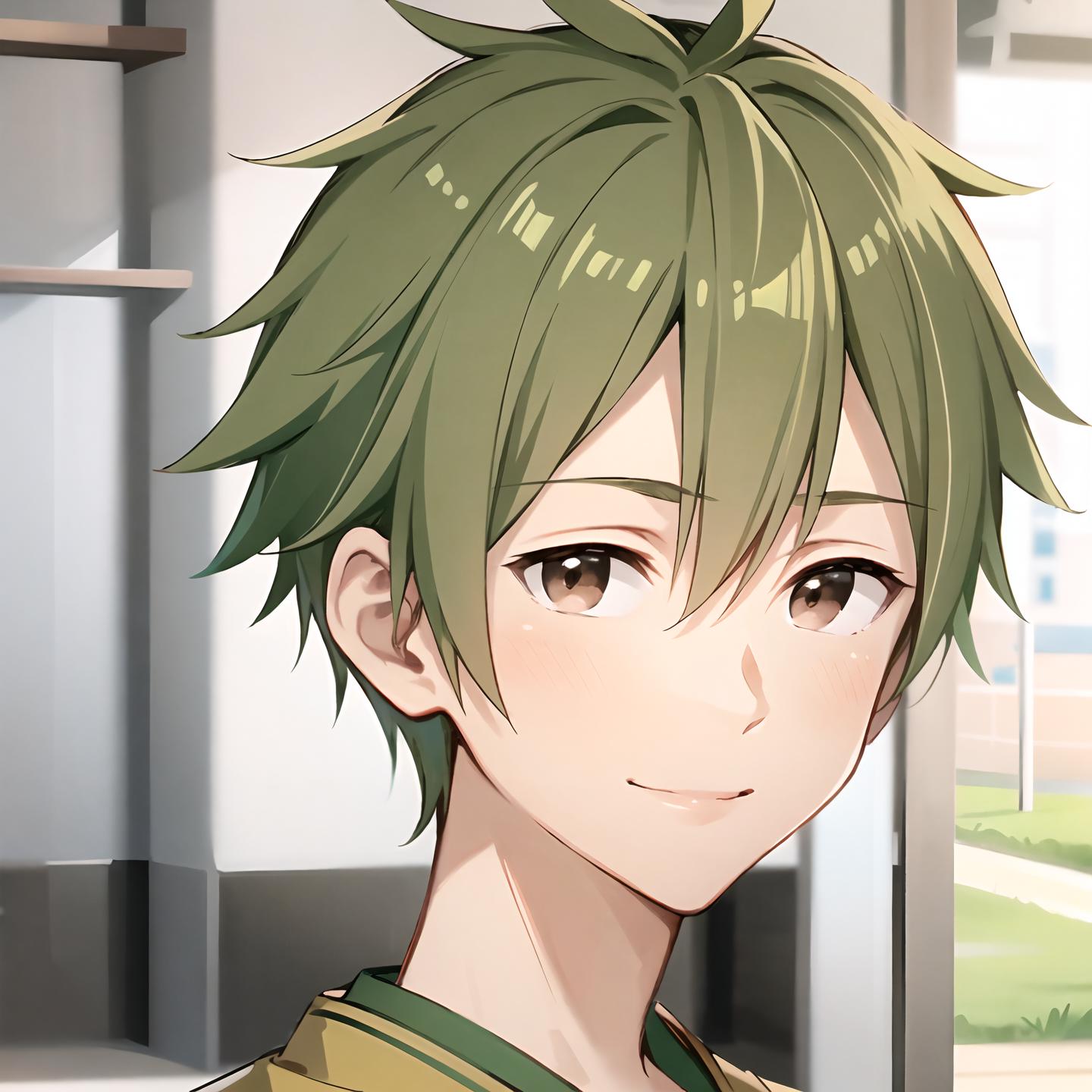 Required prompt: akiyama hayato\(side-m\), brown eyes, green hair