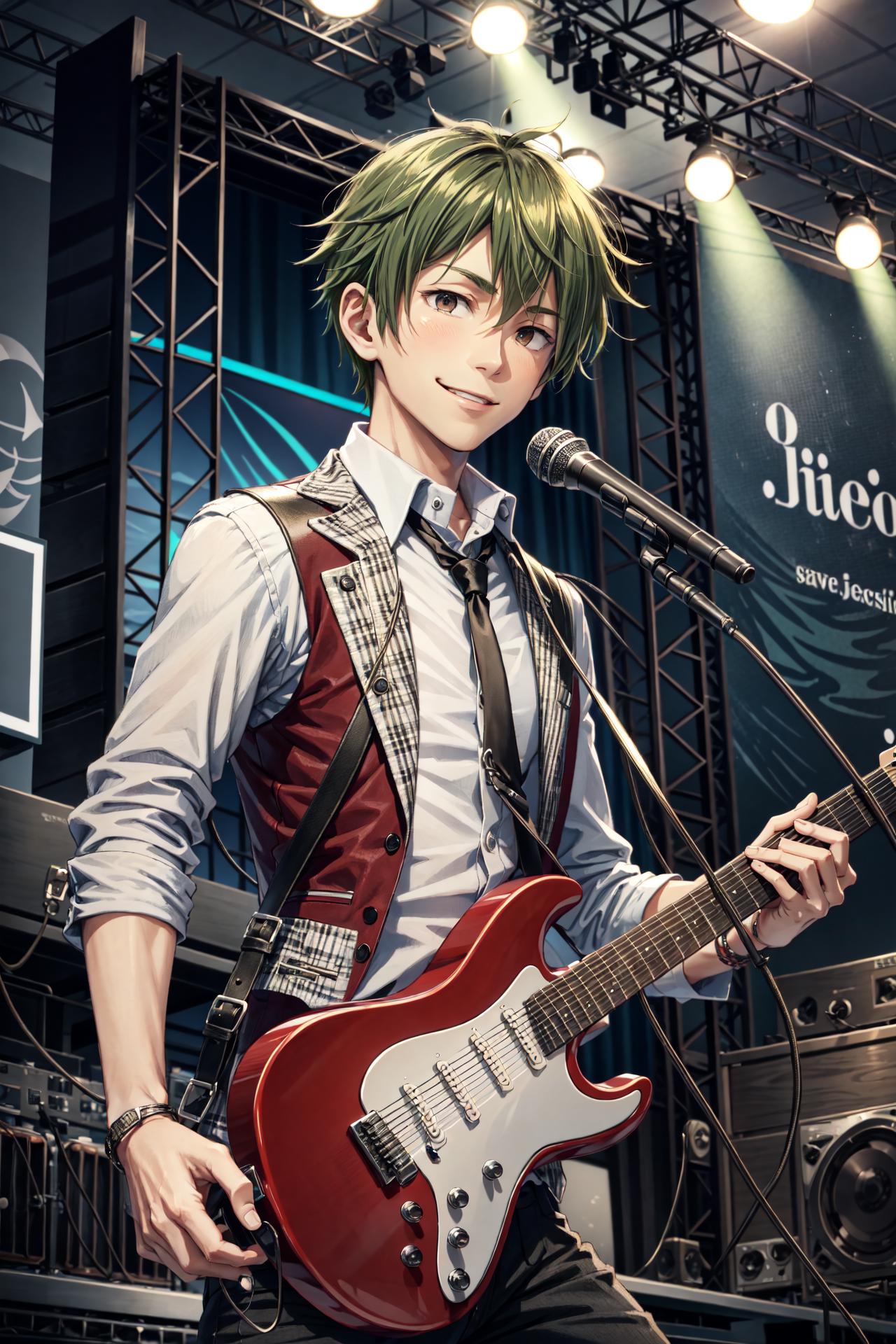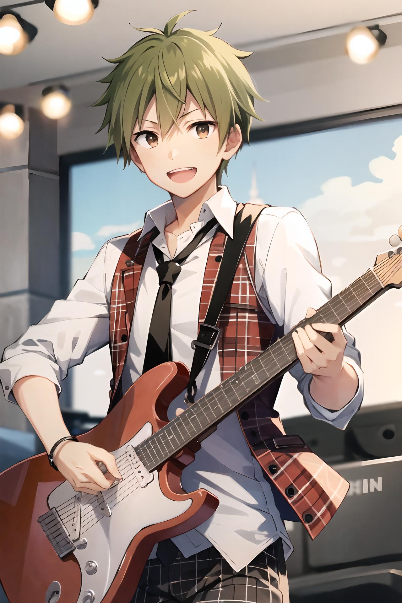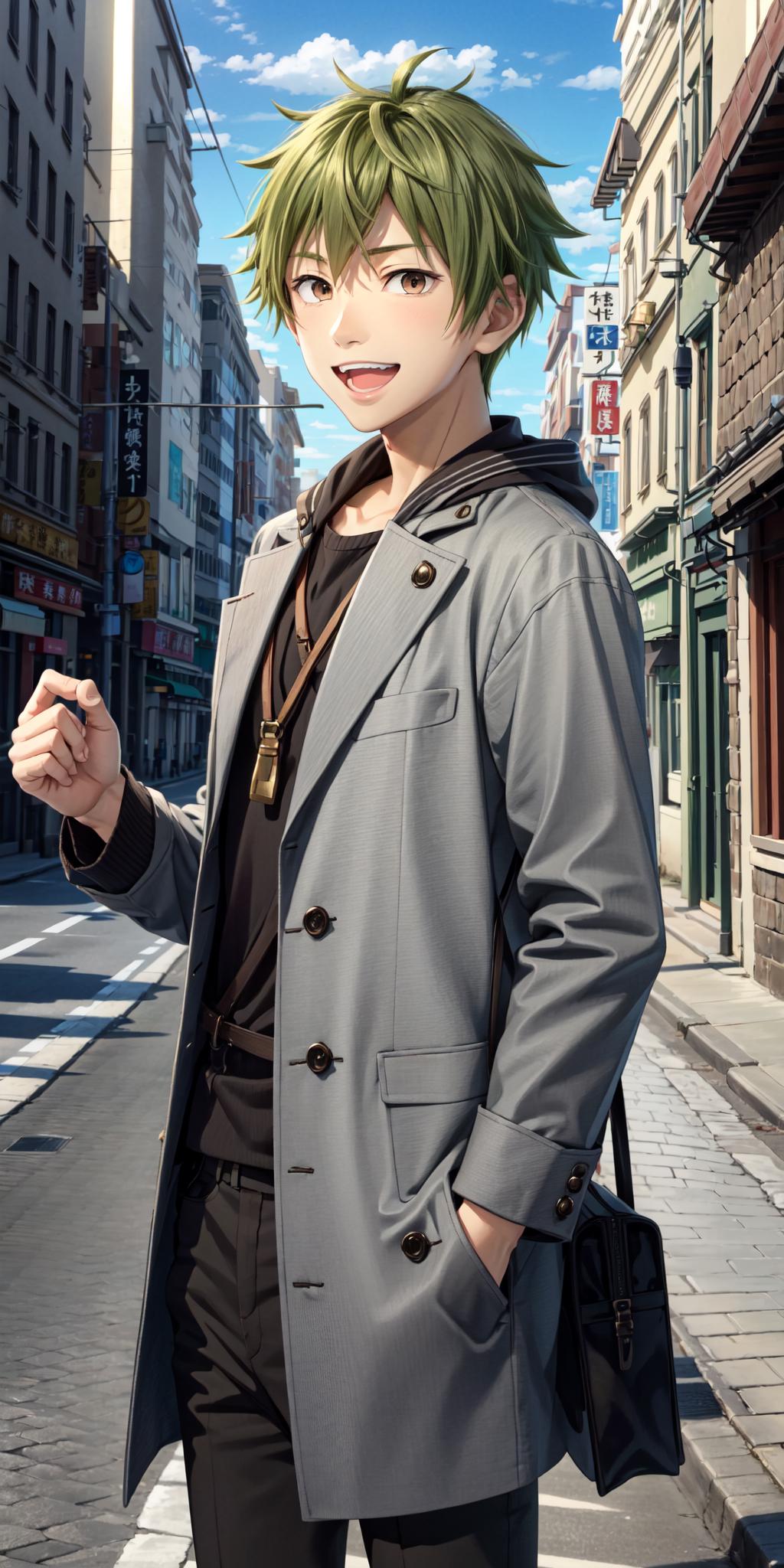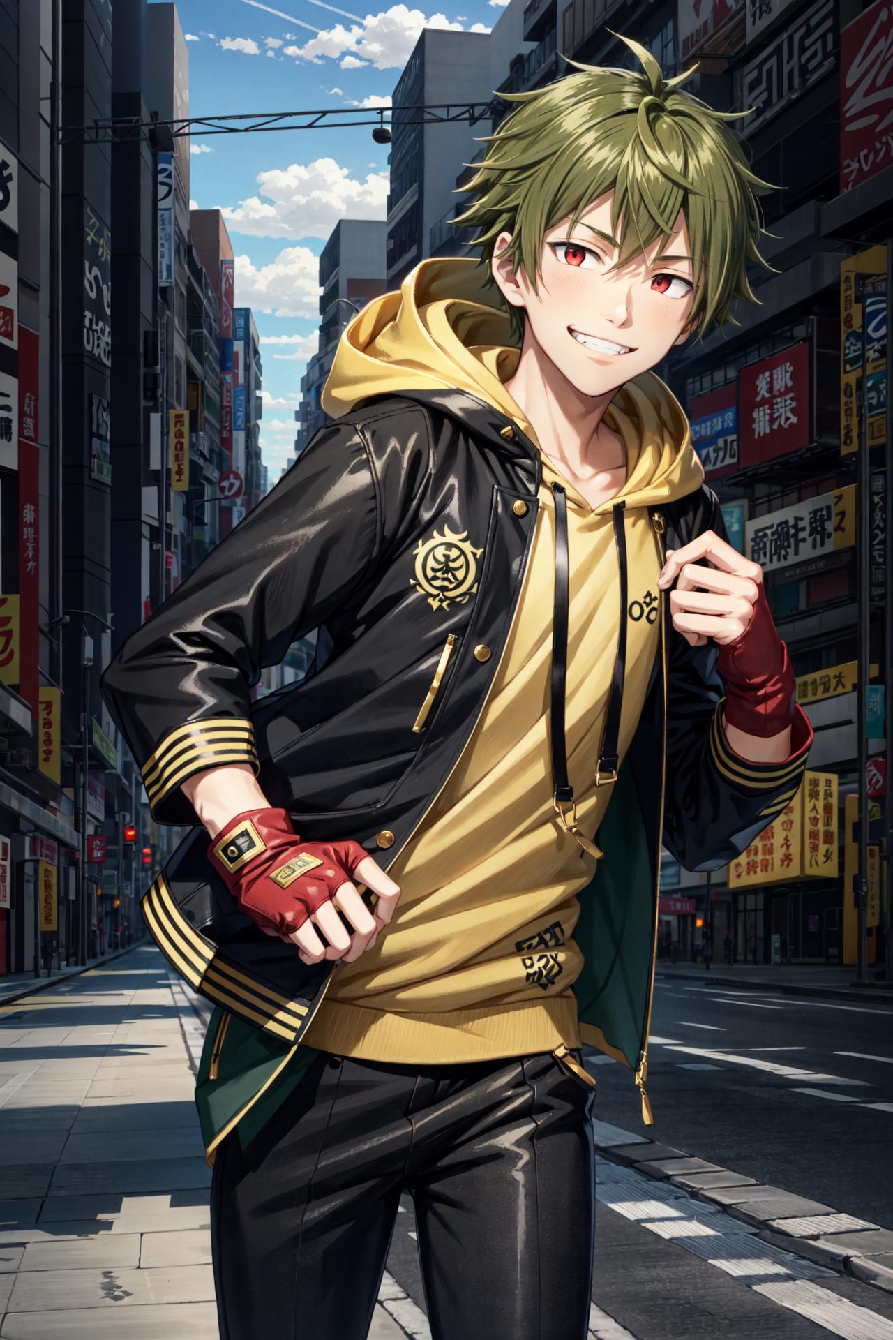 Required prompt: akiyama hayato\(side-m\), brown eyes, green hair