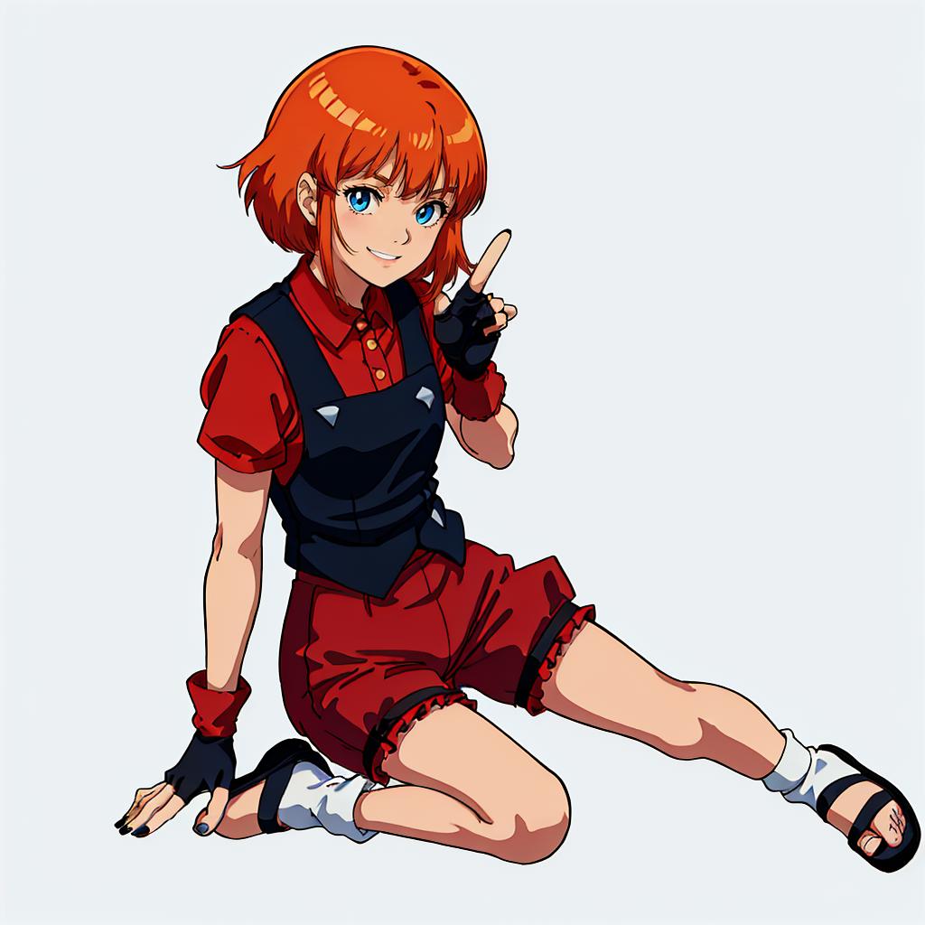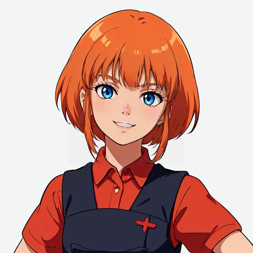 Appearance: short hair,orange hair,bangs,sidelocks,blue eyes,