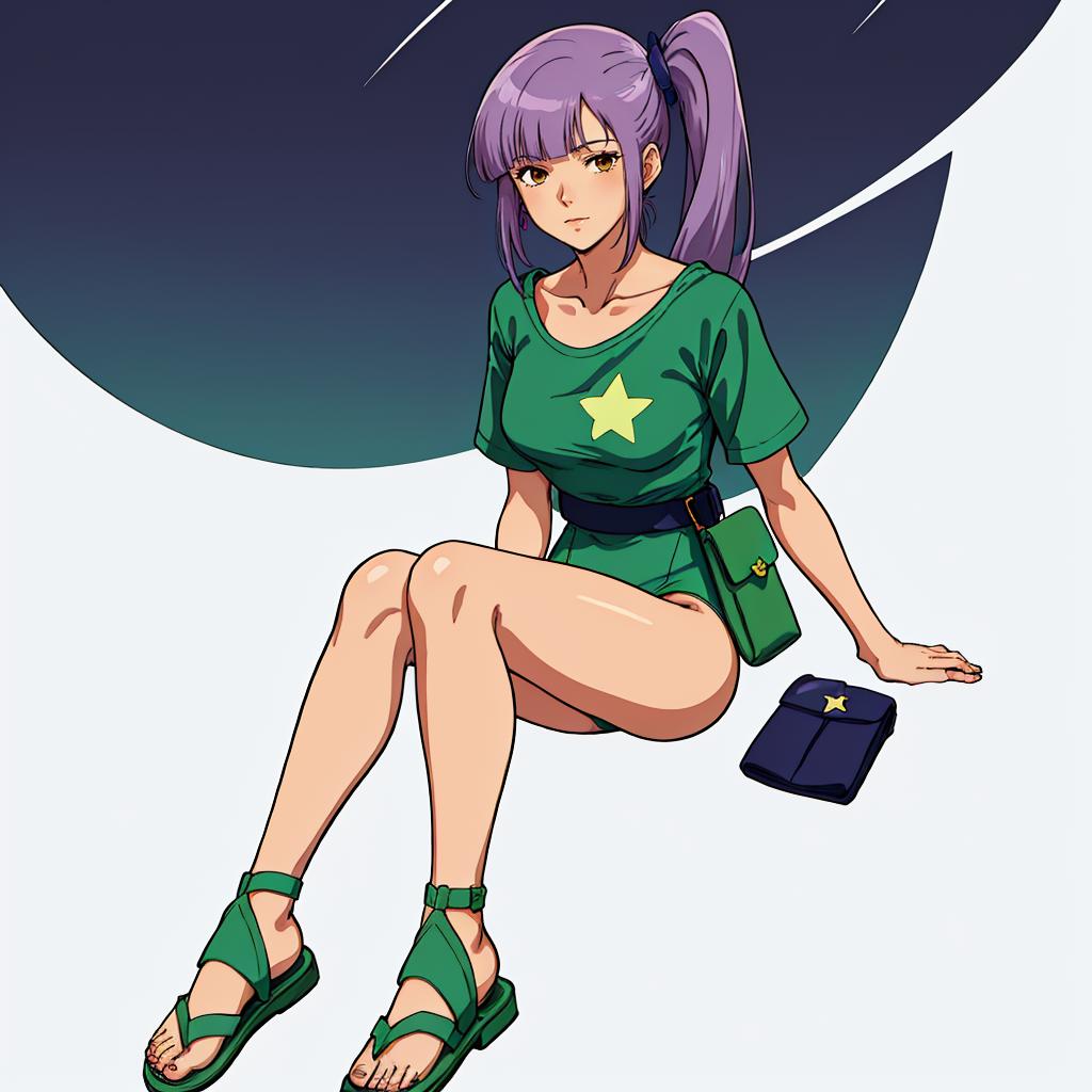 Appearance: long hair,straight hair,light purple hair,sidelocks,one sided crescent earring,bangs,jewelry,brown eyes,