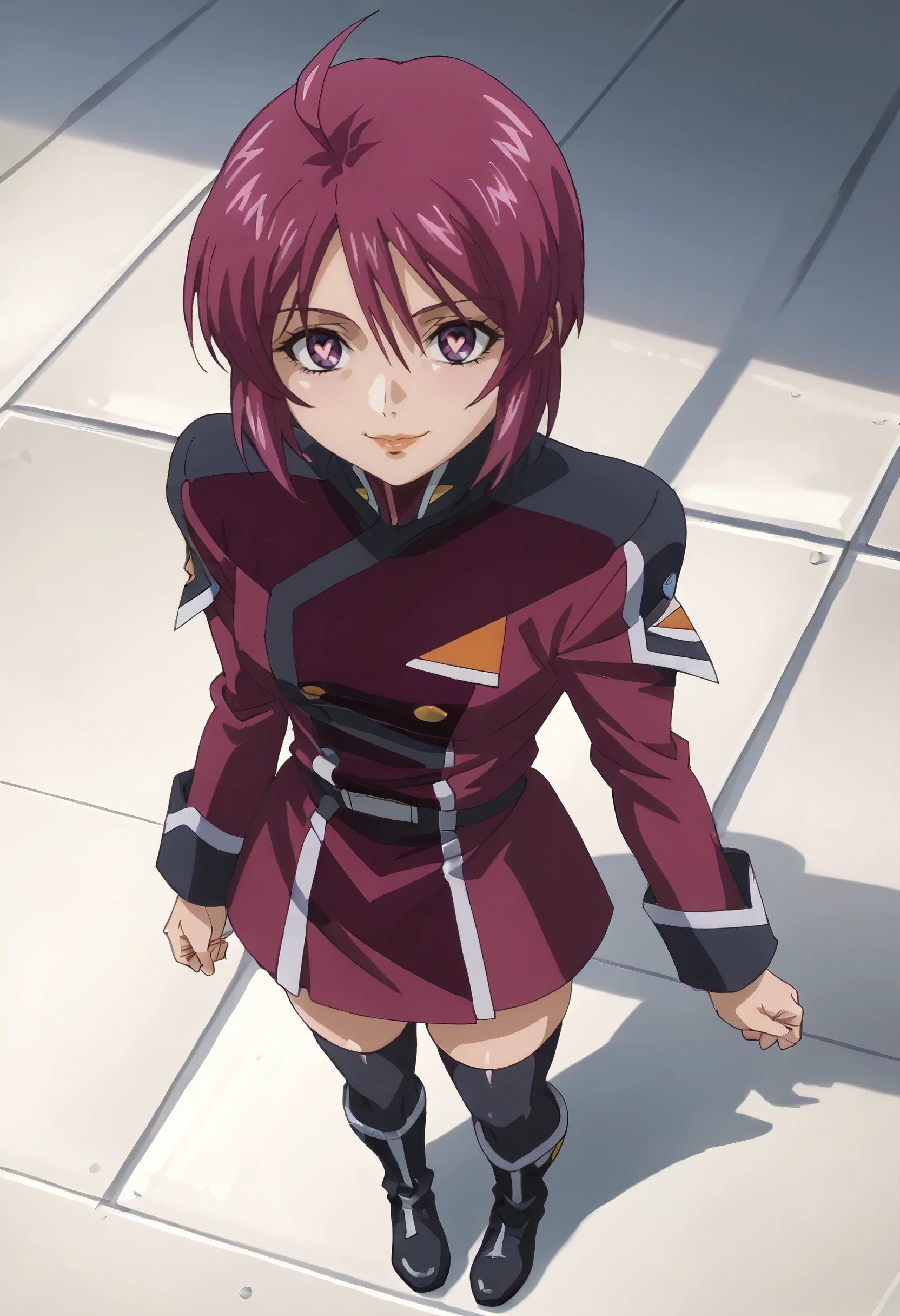 LunamariaUniform, uniform, military uniform, military, long sleeves, jacket, skirt, pink skirt, black legwear, thighhighs, boots,