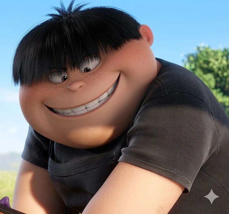 w4lter, short boy, chubby, fat, black hair, bowl cut, dark eyes, round face, black jumpsuit, black overalls, black shirt, black pants, black boots