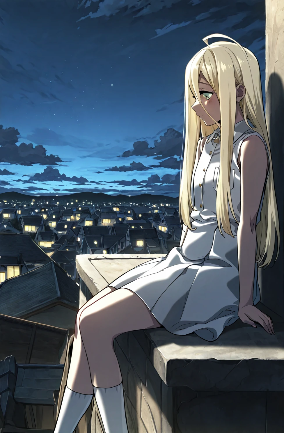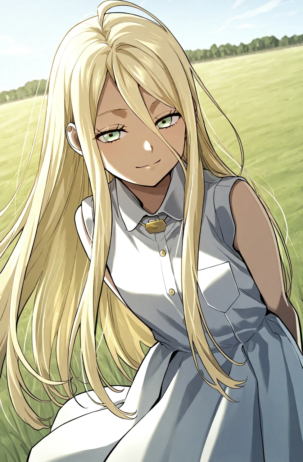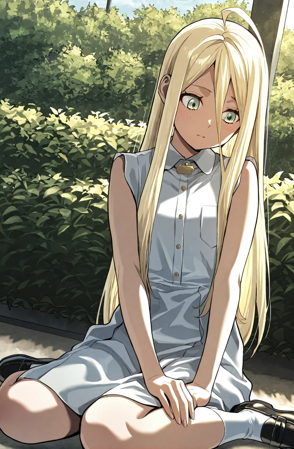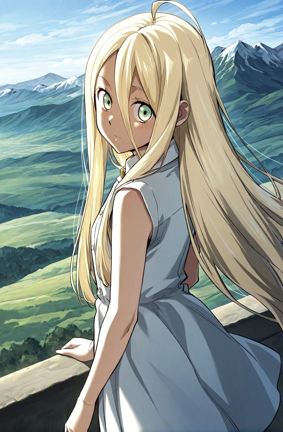 1 girl, solo, blonde hair, long hair, straight hair, ahoge, green eyes,