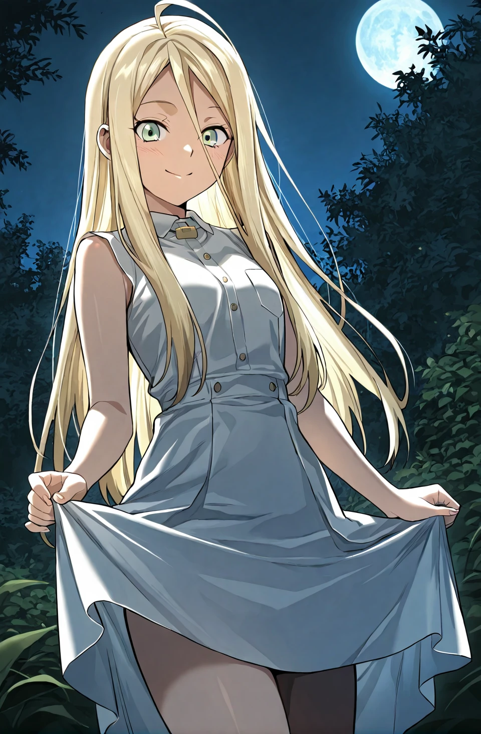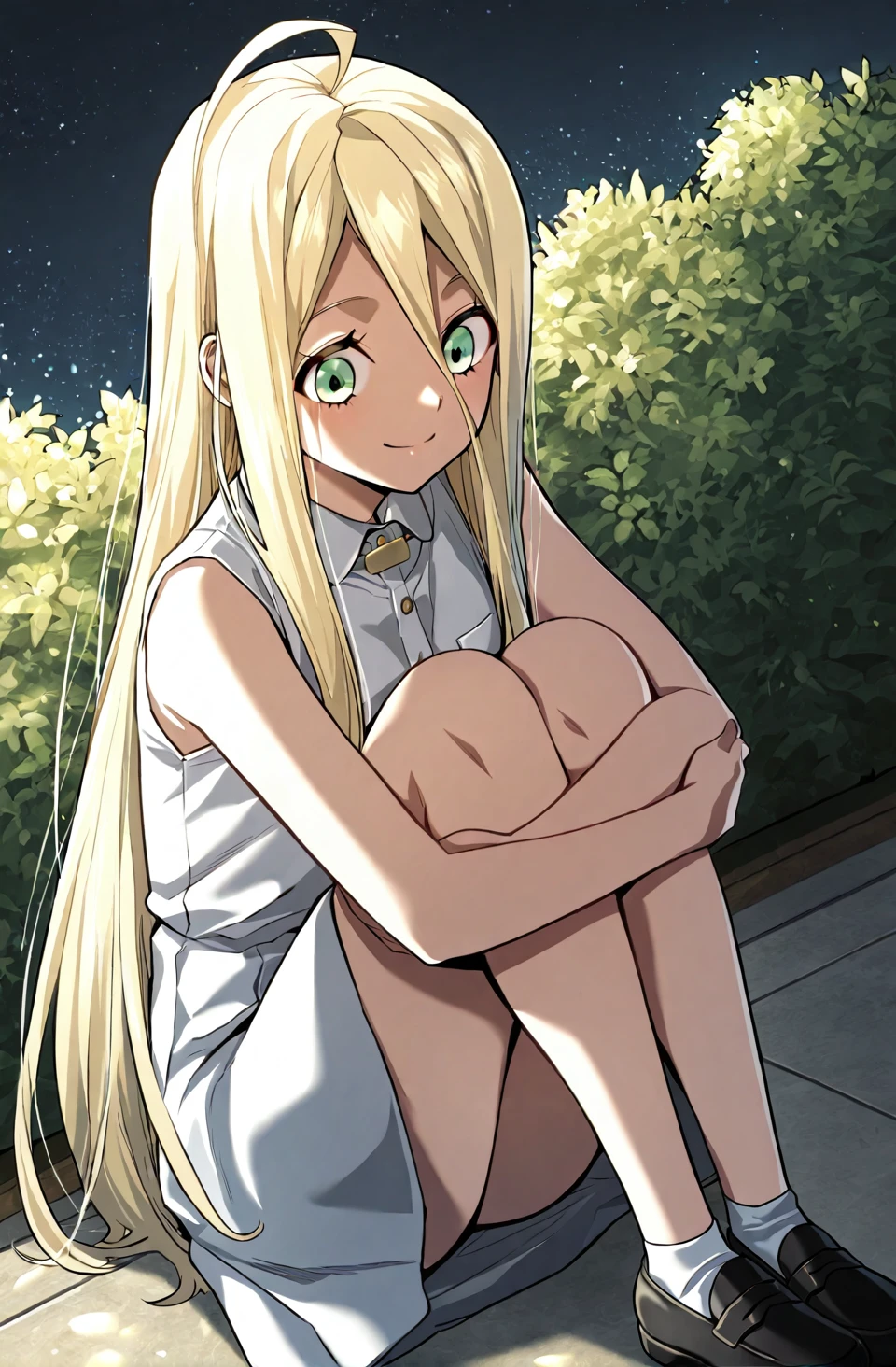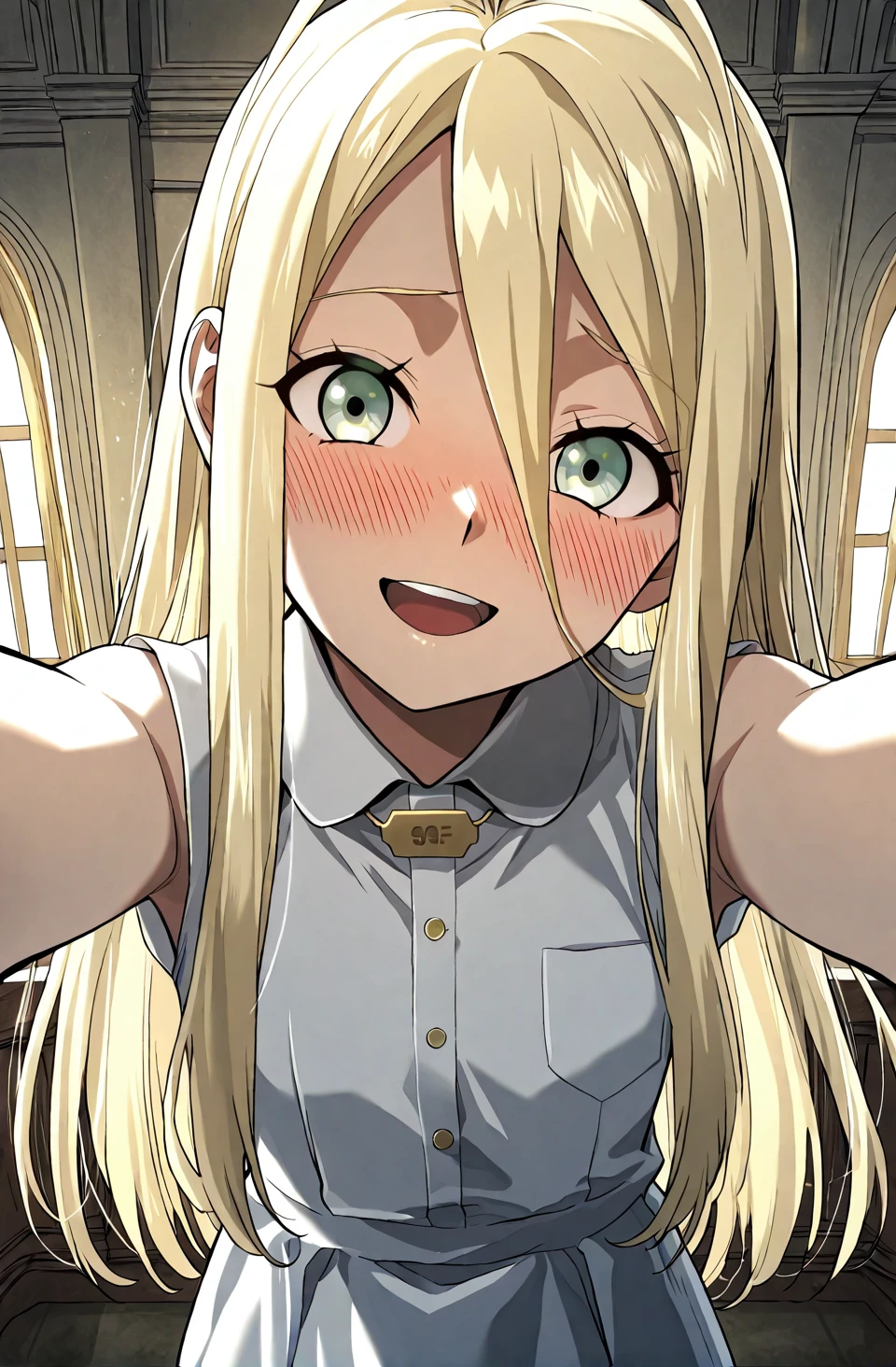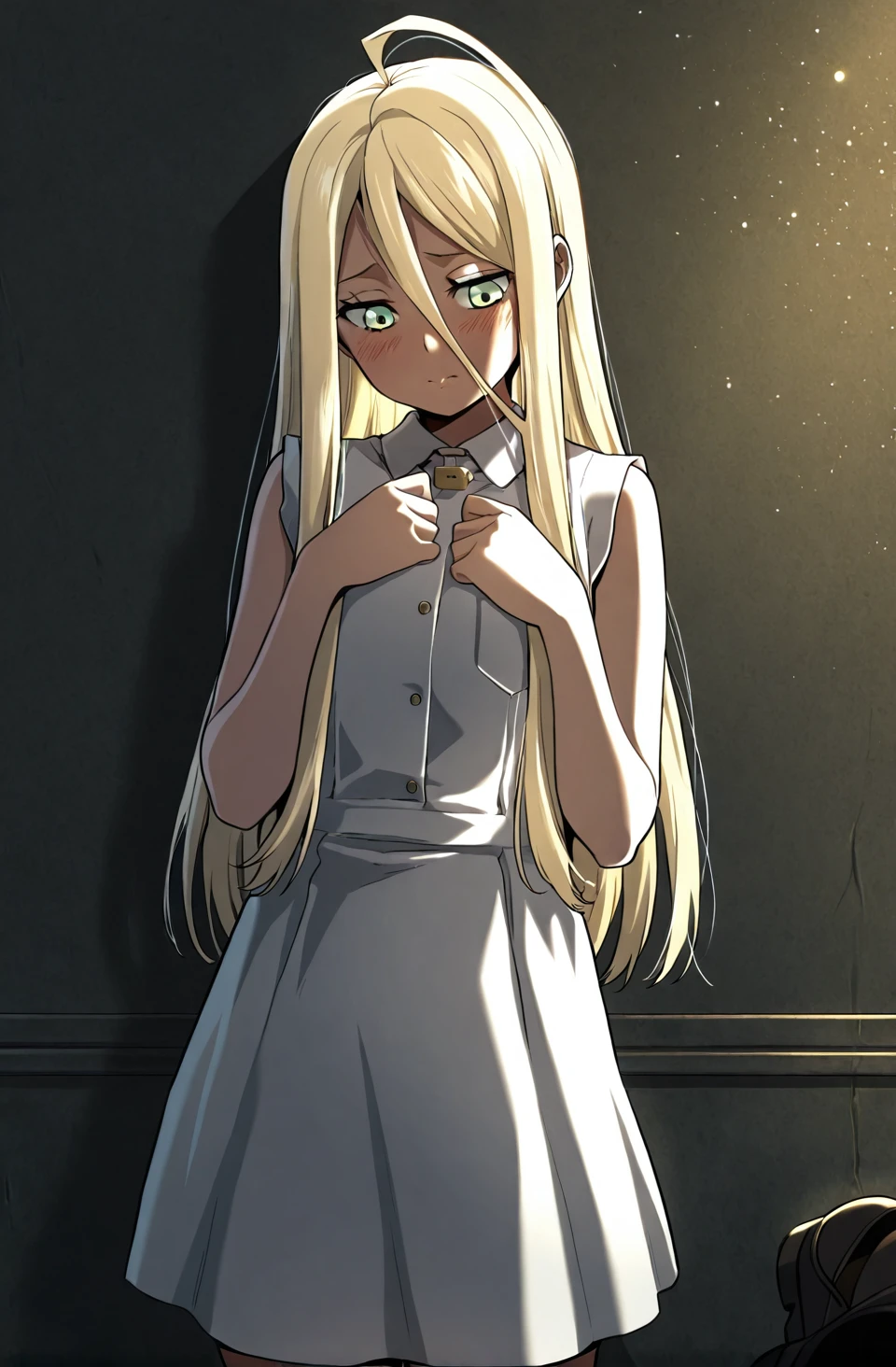 1 girl, solo, blonde hair, long hair, straight hair, ahoge, green eyes,