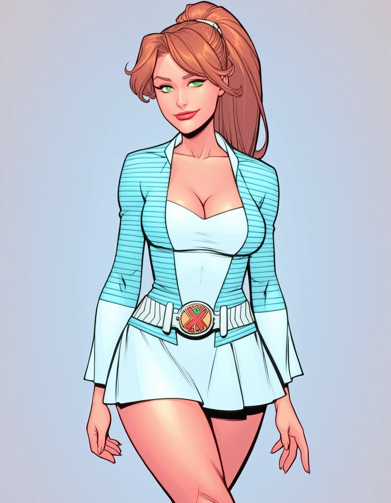 xamandax, brown hair, long hair, ponytail, green eyes, lipstick, western comics \(style\),
