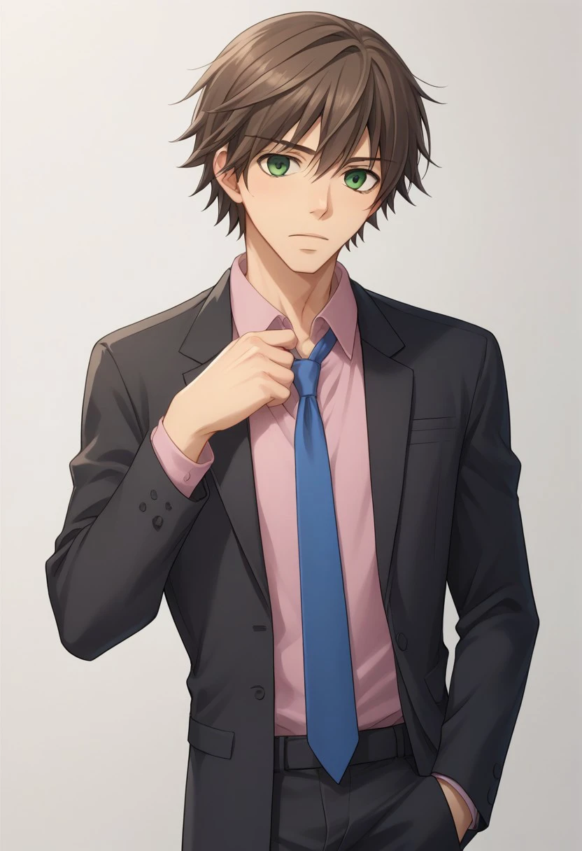 Formal - misaki, 1boy, male focus, formal, necktie, suit, black suit, green eyes,