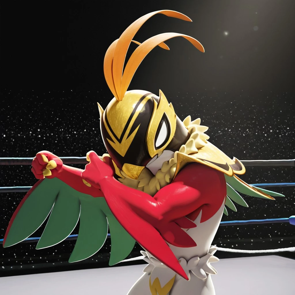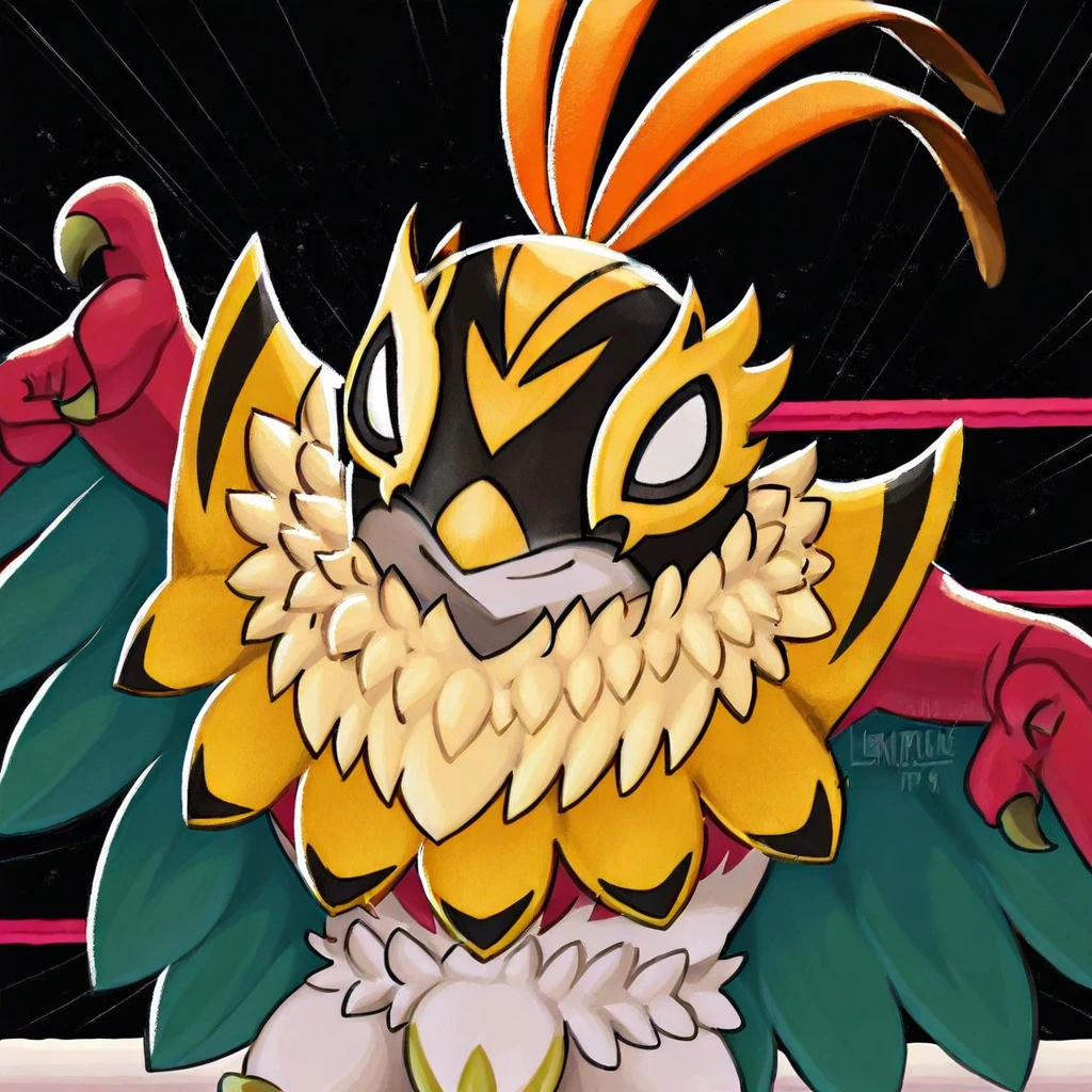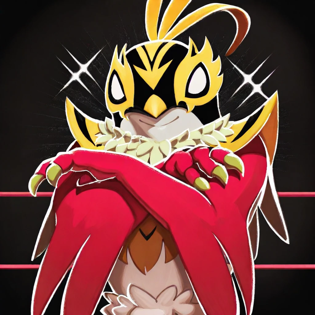 MH(character), bird, anthro, Pokémon(creature), wrestler mask, arm wings, feathers,