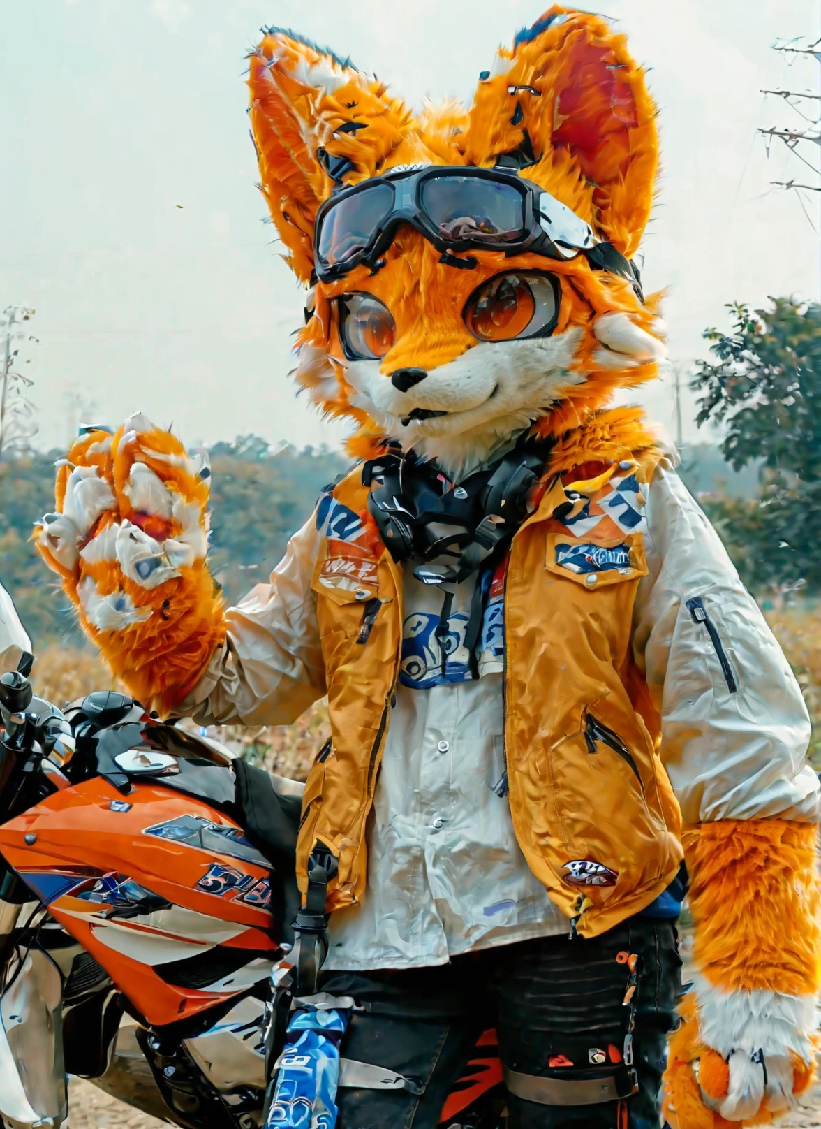 Trigger words:full fur suit, realistic, furry+dog/rabbit/cat/fox/dragon, (colour and colour) fur, furry paws, furry rabbit/fox/dog/cat ears, horns (optional),clothing tags,furry feet(optional)
