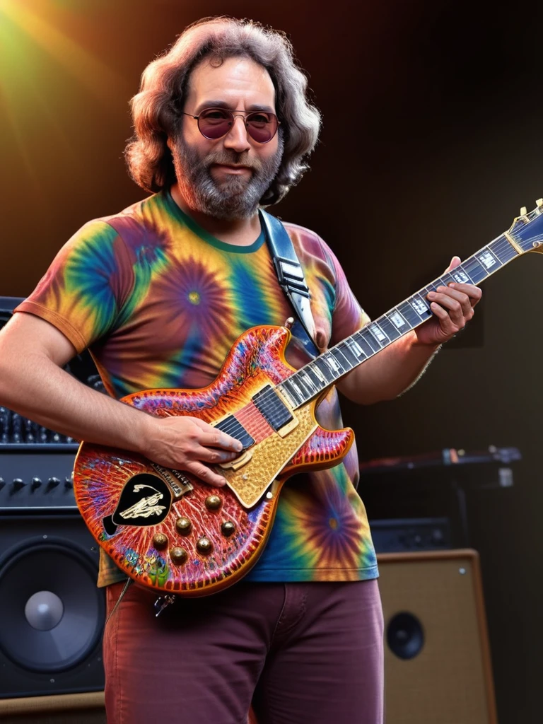 Info: This was my first male LoRA subject, I still have a lot to learn. Since he was a guitarist, you generally won't need to include 'guitar' as a prompt, it'll just be there. But I also tried baking in some alternative instruments with the hope that if you wanted Jerry Garcia to play an accordion, you could make that happen. Good luck.