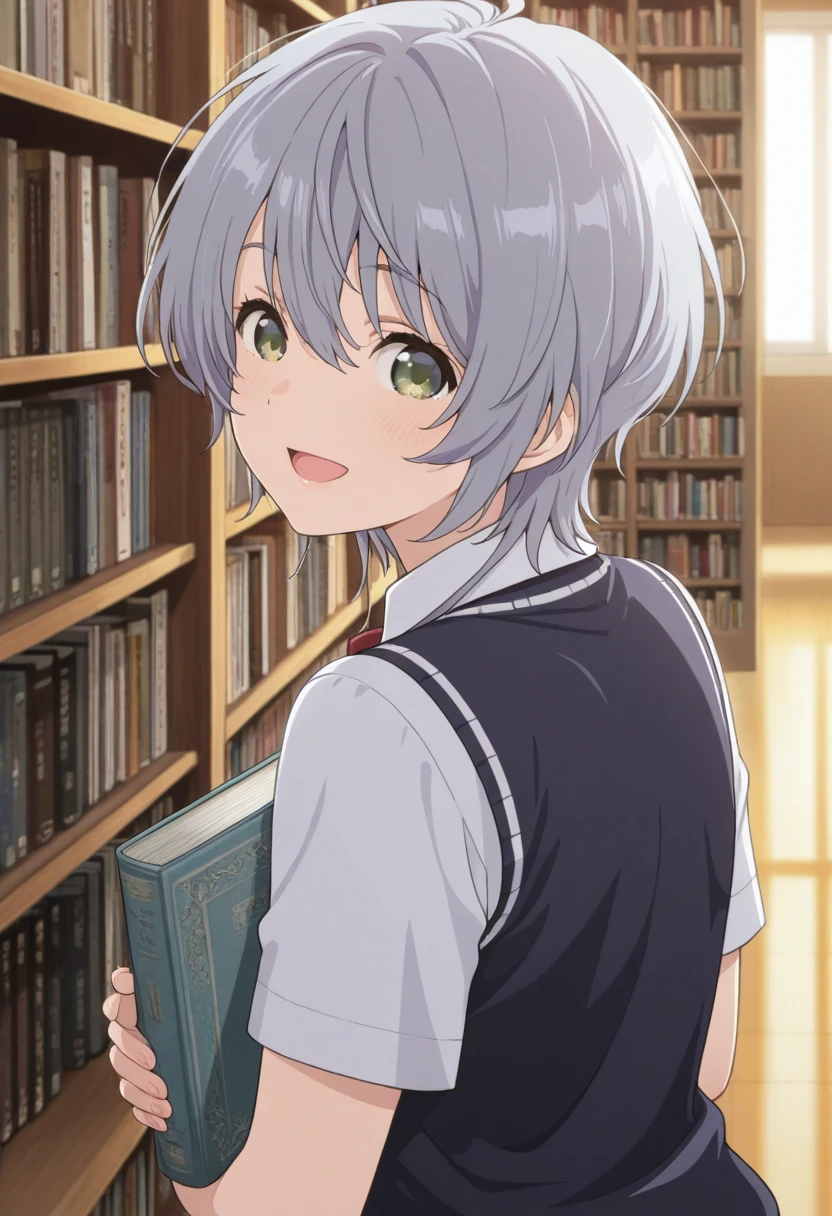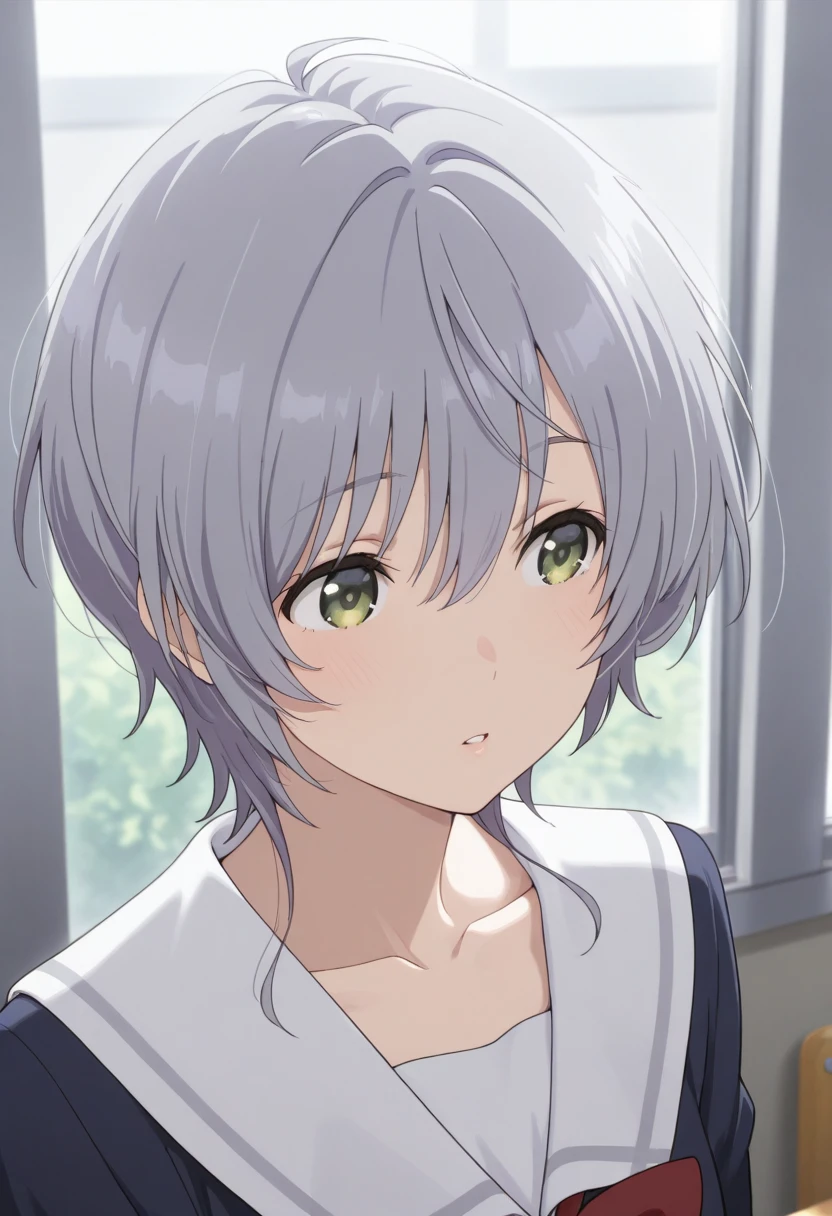Trigger Words: kikuchi fuuka, grey hair, short hair, green eyes