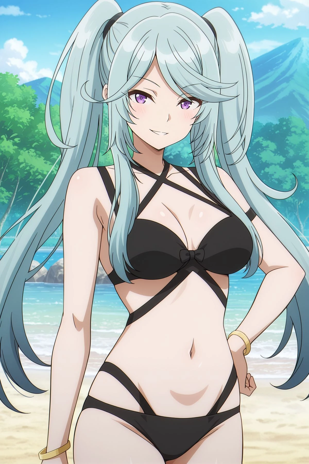 criss-cross halter, halterneck, black bikini, bracelet,