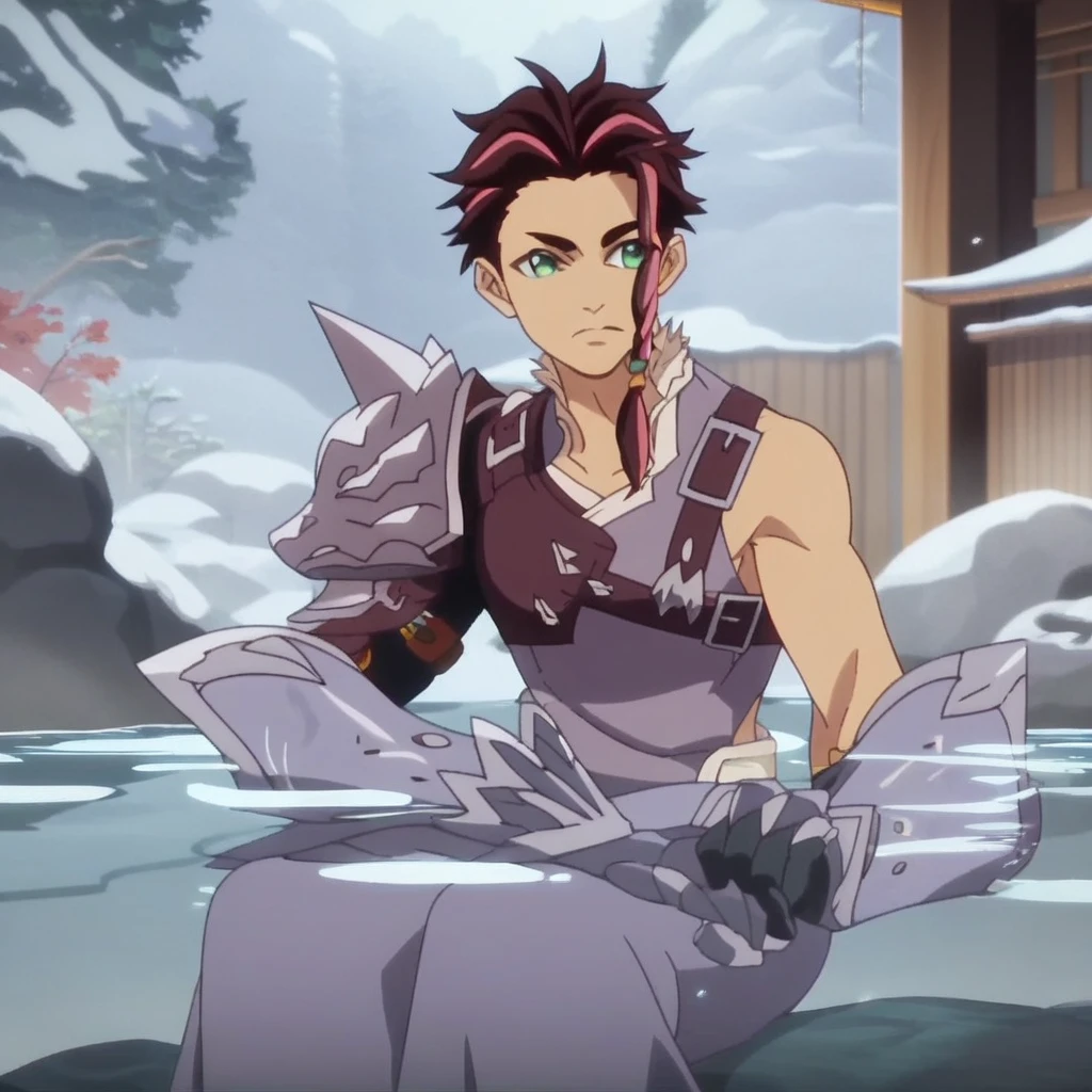 Law, two-tone hair, brown hair, pink hair, braid, green eyes