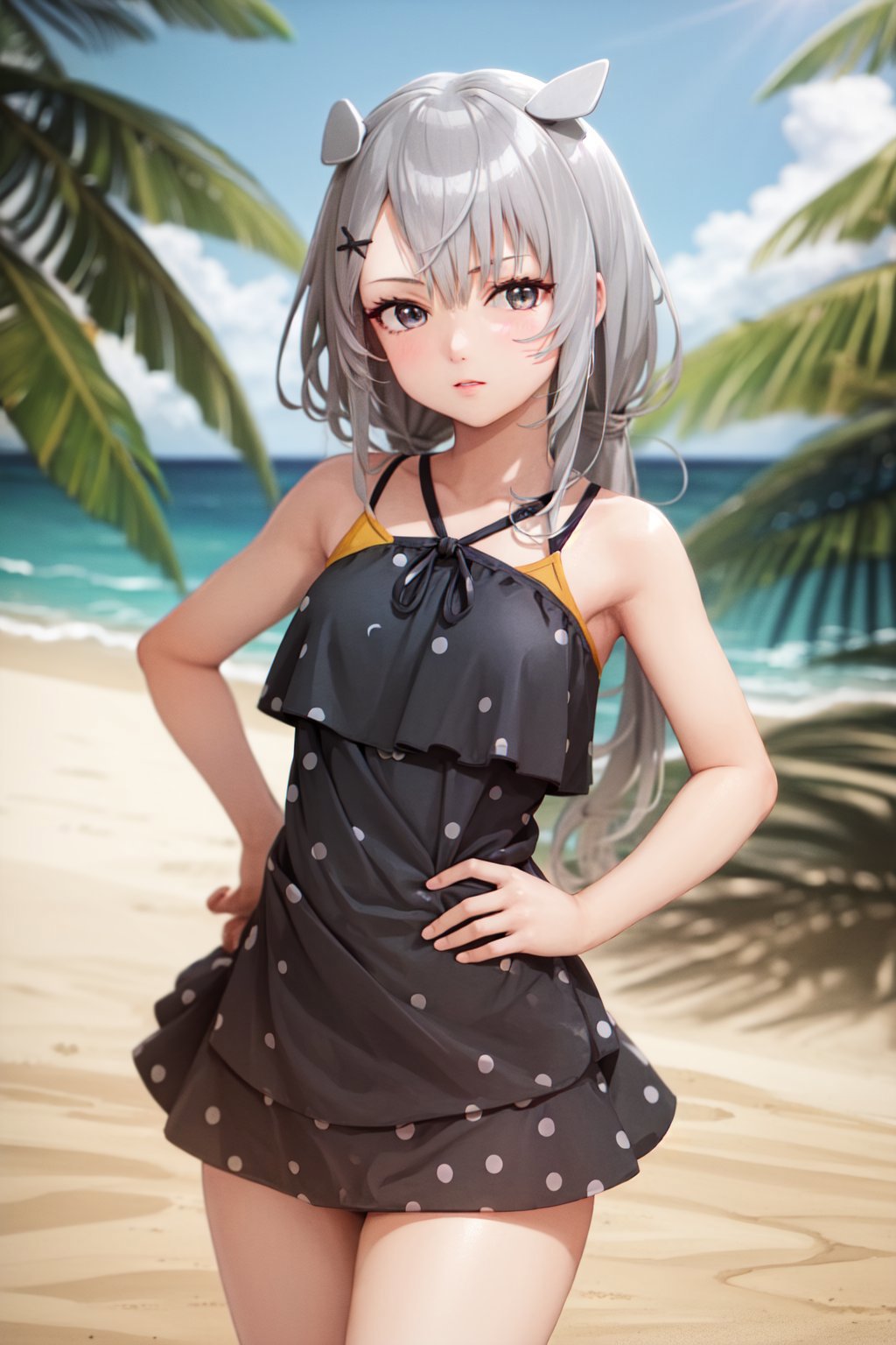 Summer 2022 (unstable): black one-piece swimsuit, polka dot swimsuit