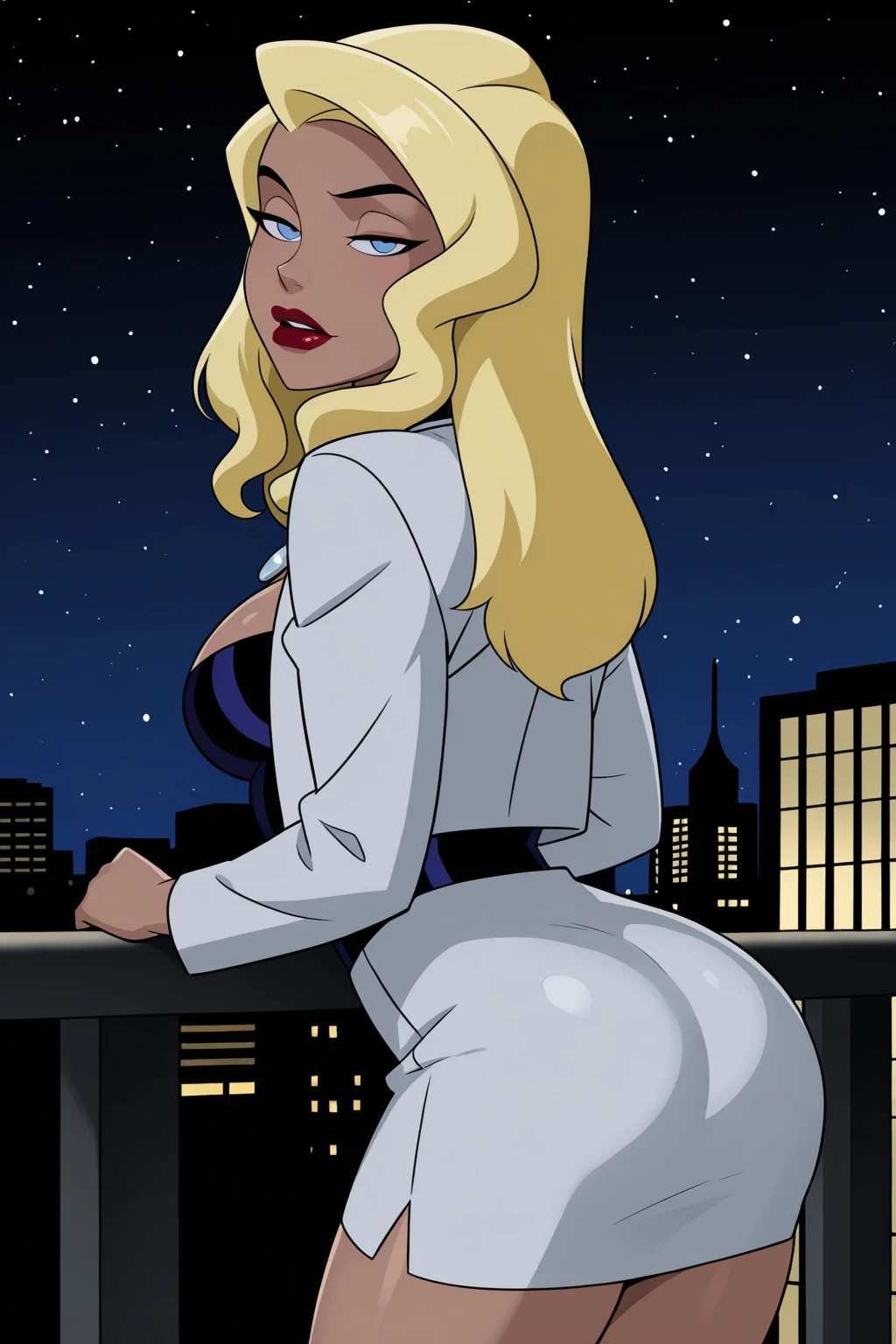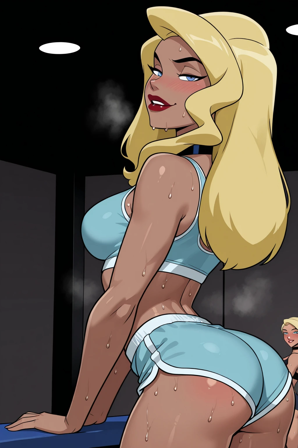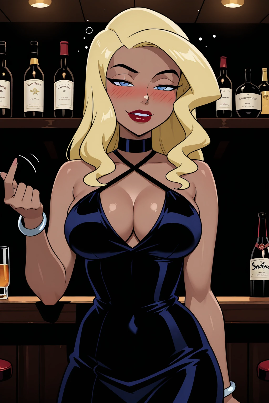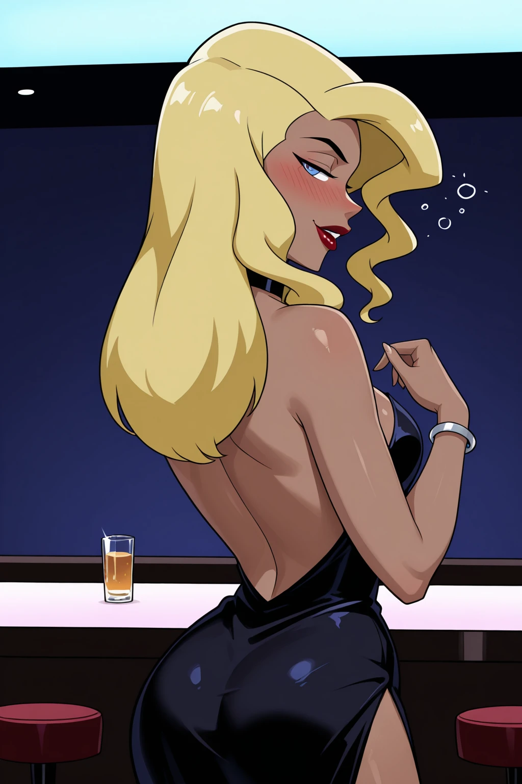 Base Prompt: dinah lance, long hair, blond hair, blue eyes, dark-skinned female