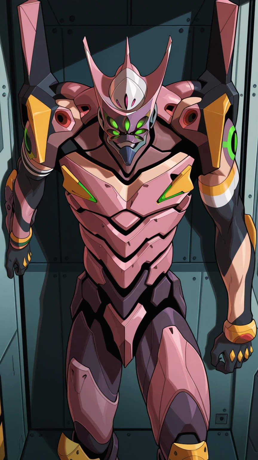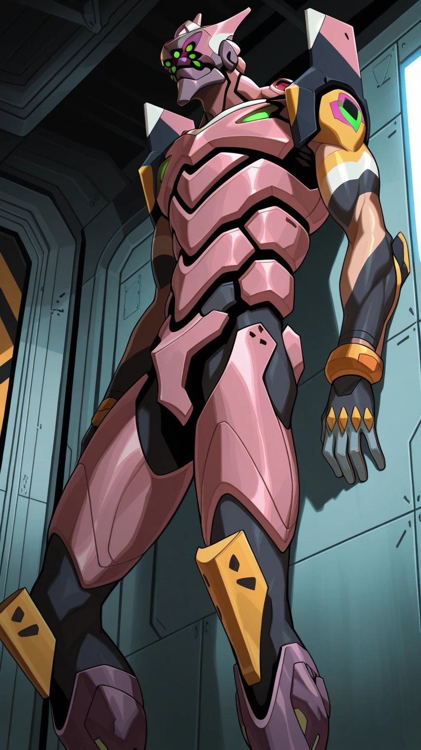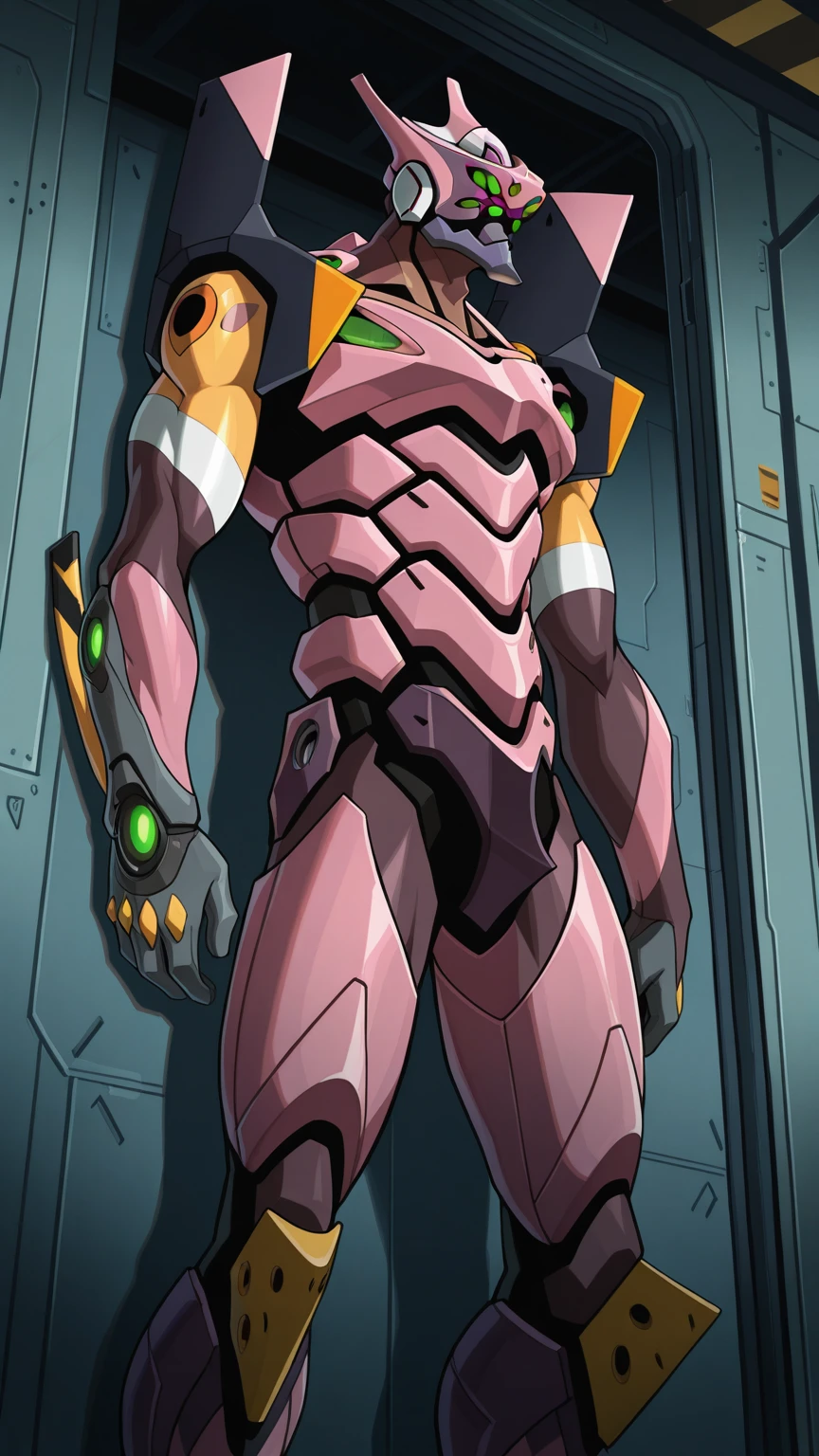 Eva08, cyborg, Pink armor, leg armor, arm armor, Green eyes, multiple eyes