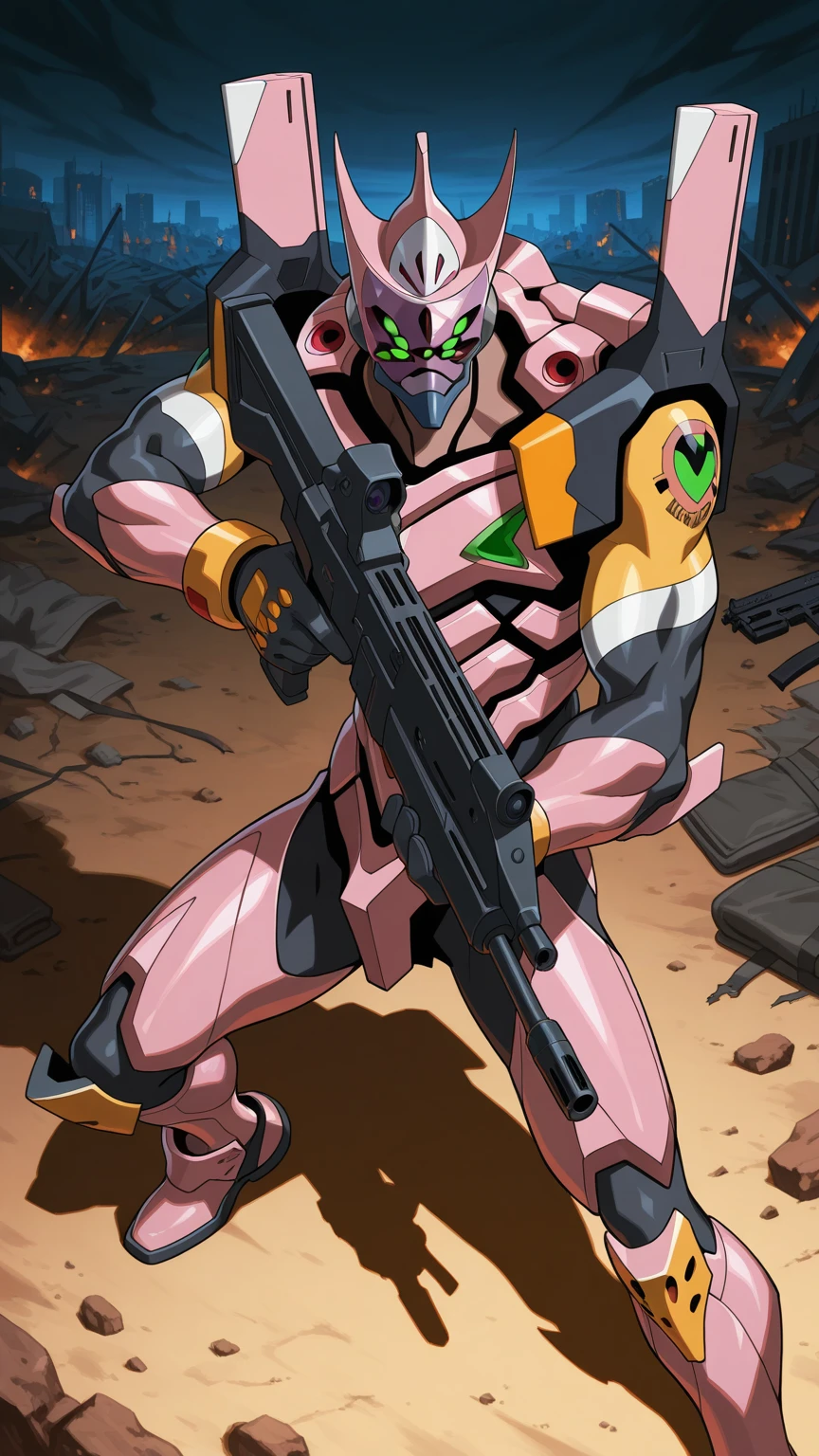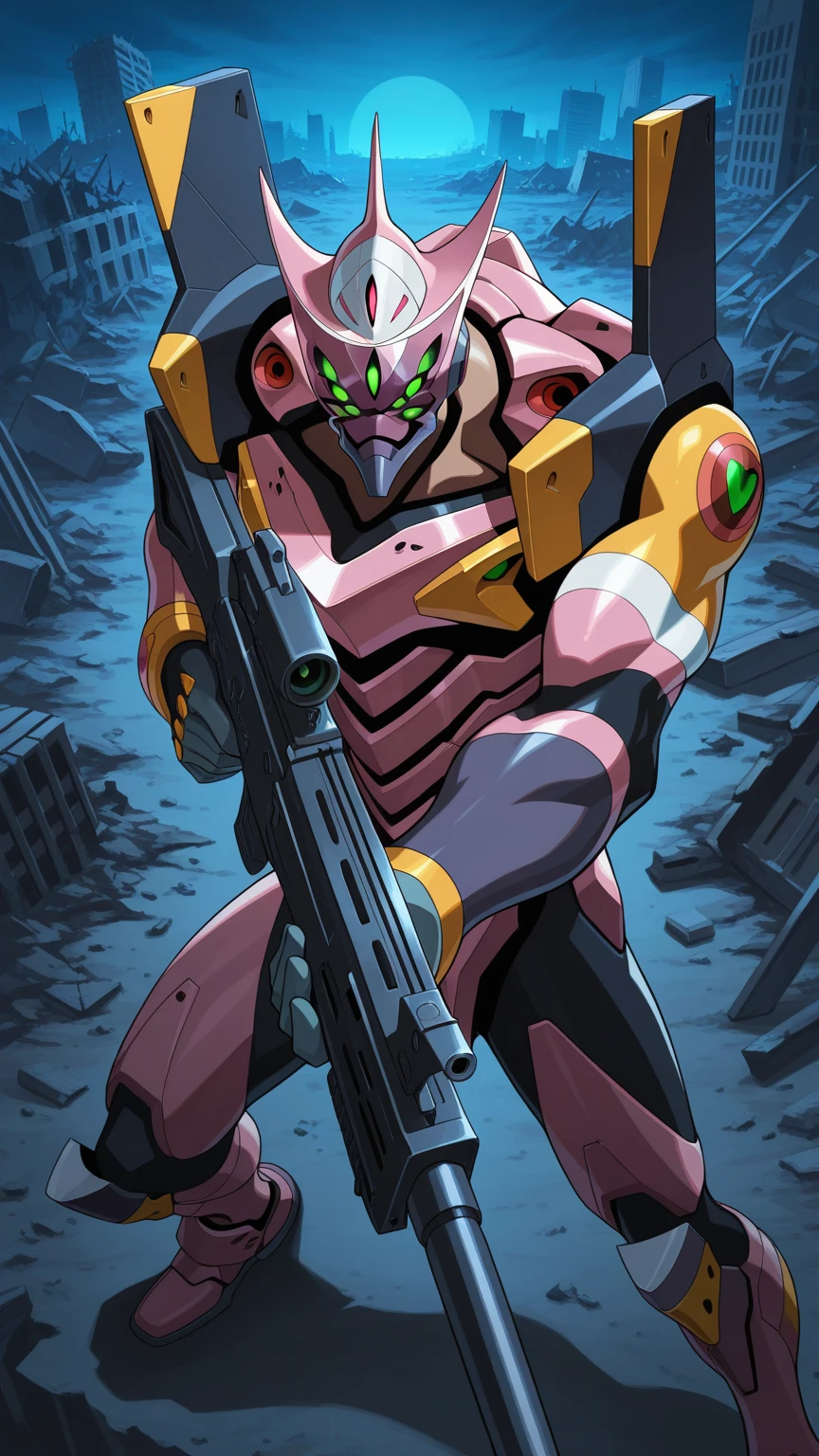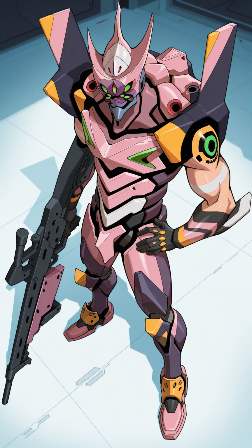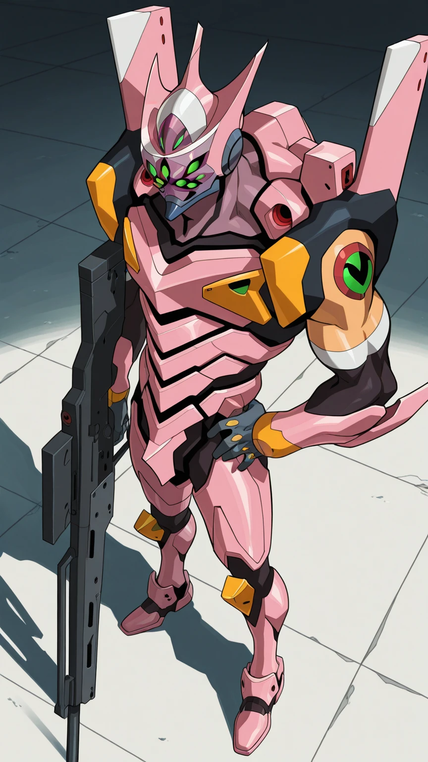 Eva08, cyborg, Pink armor, leg armor, arm armor, Green eyes, multiple eyes