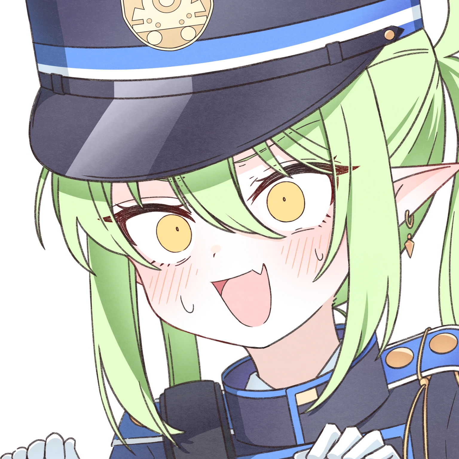 1girl, green hair, twintails, long hair, yellow eyes, open mouth,