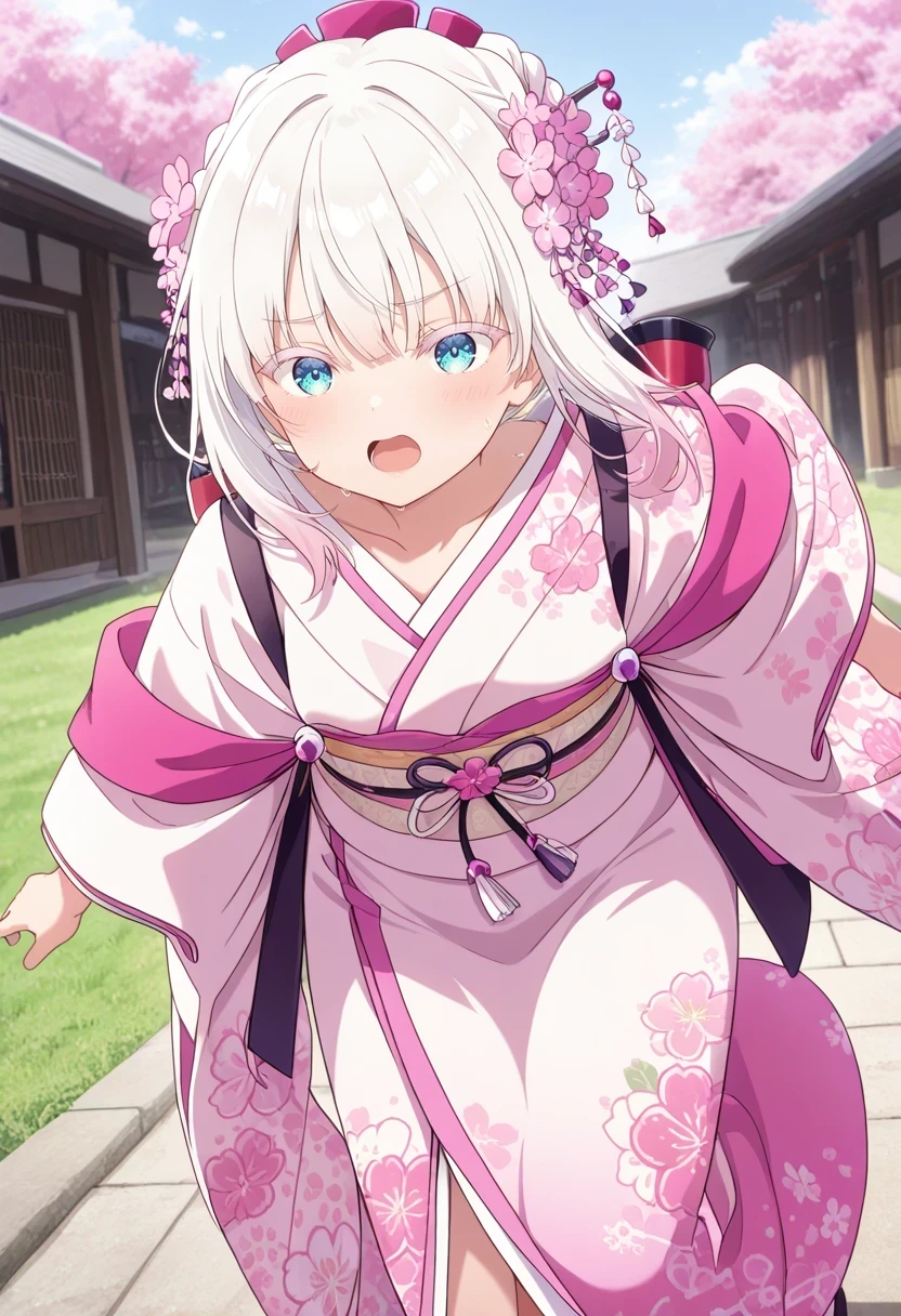 single hair bun,japanese clothes,floral print,