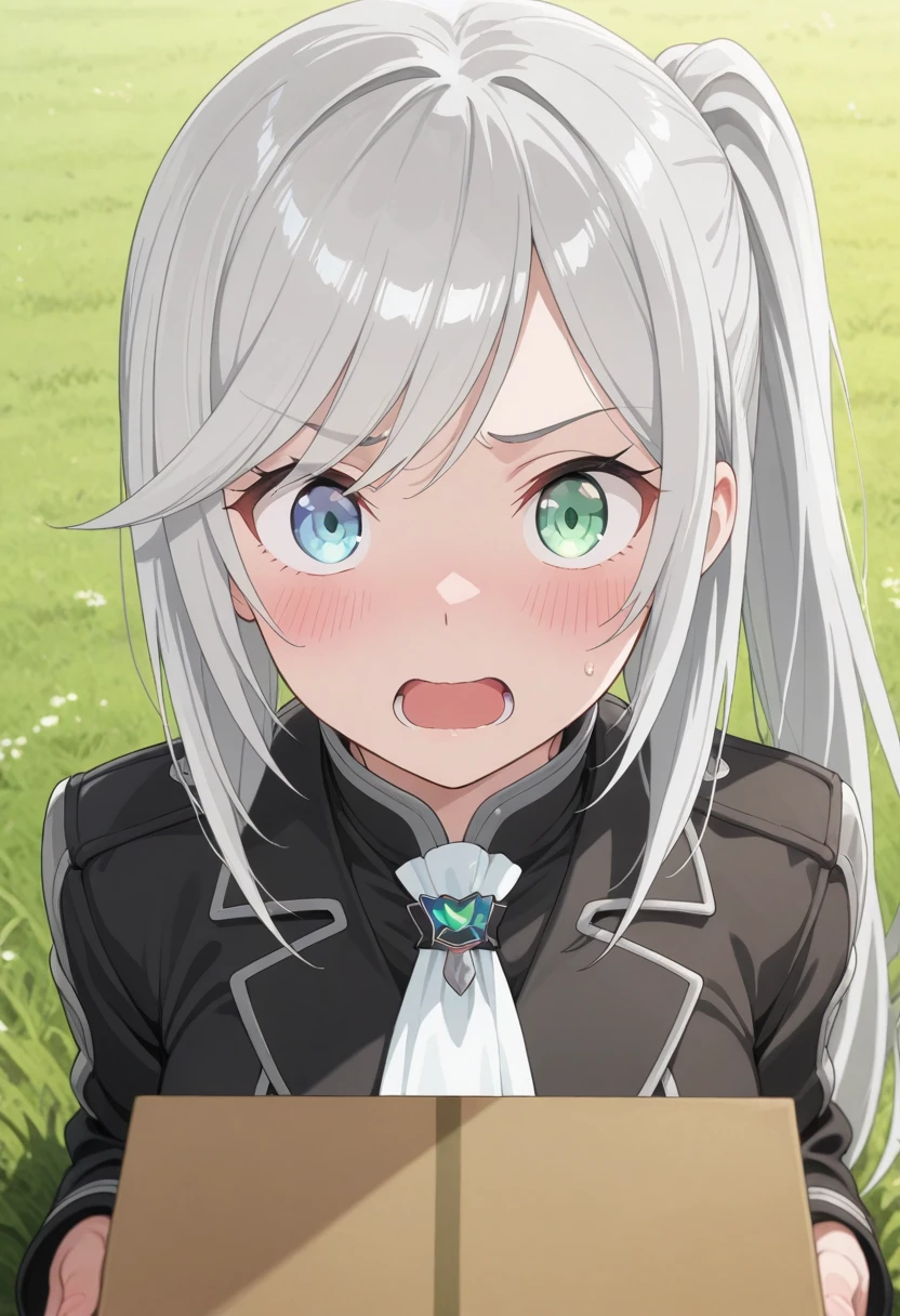 Trigger Words: livia de udis, long hair, grey hair, blue eyes, heterochromia, green eyes