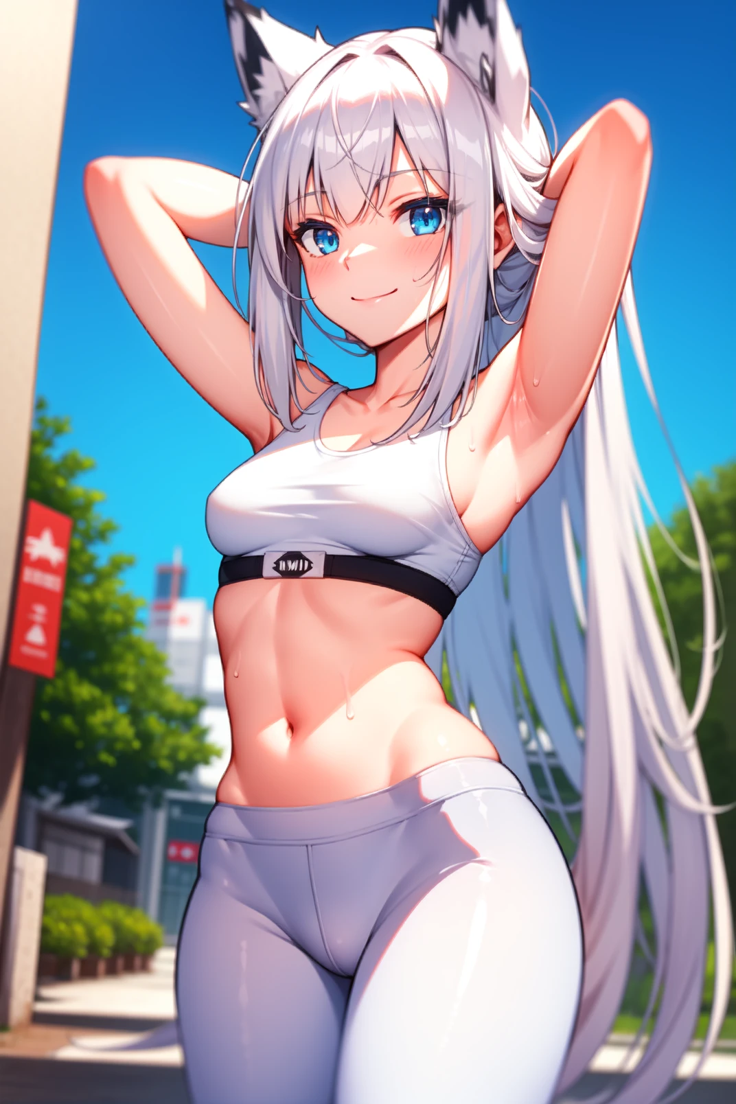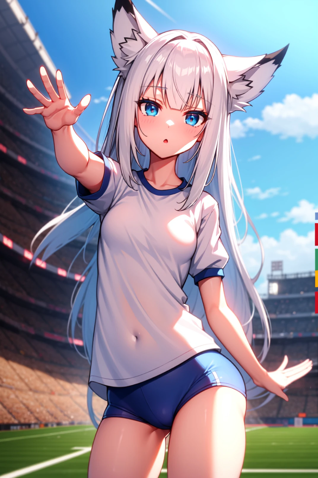 kawakaze, blue eyes, white hair, very long hair, bangs, sidelocks, fox ears