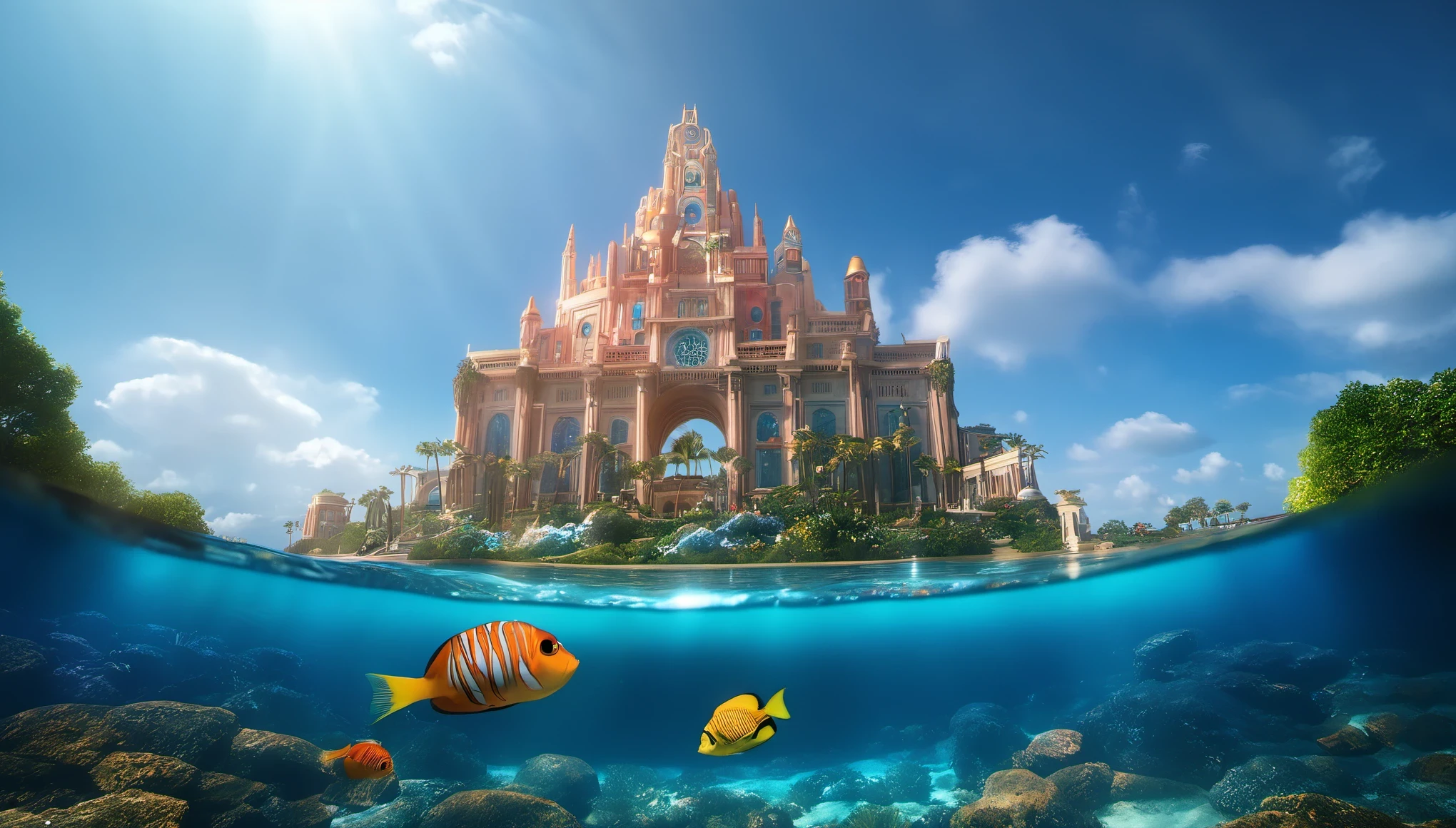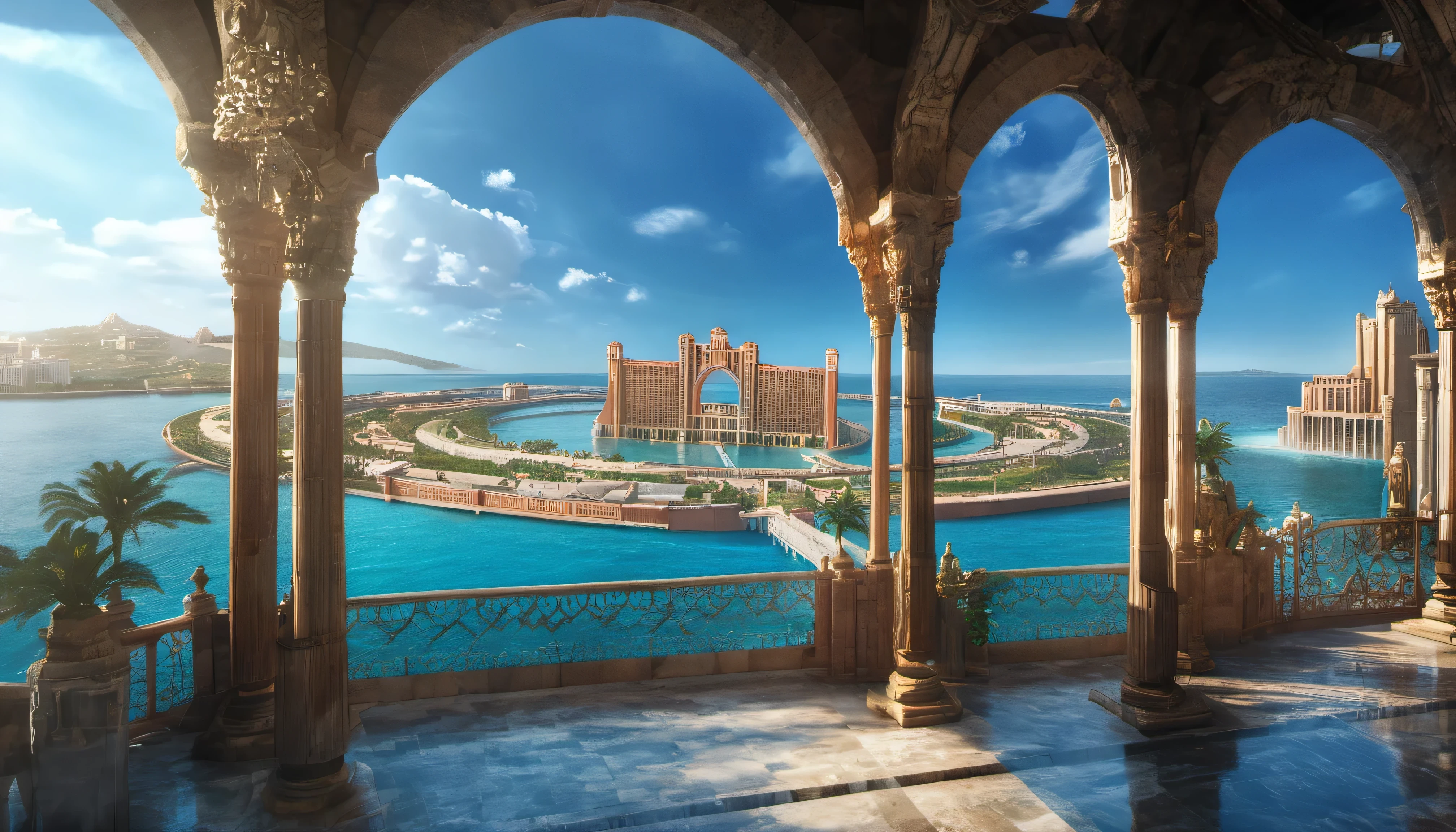 In addition to the traditional narrative, this adaptation of the Lost City of Atlantis includes vivid depictions of its infrastructure and surroundings. Extra scenery vividly portrays various views of majestic buildings and terraces, offering glimpses into the grandeur of this ancient civilization.