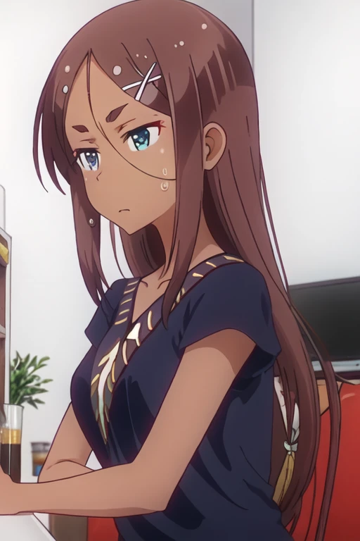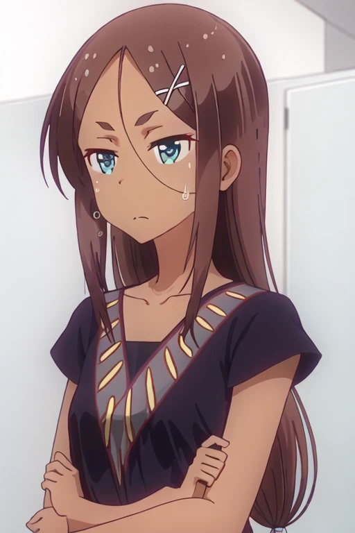 The trigger word is ahagon_umiko_newgame, and the recommended tags are best quality, masterpiece, highres, solo, {ahagon_umiko_newgame:1.15}, brown_hair, long_hair, dark_skin, dark-skinned_female, hair_ornament, blue_eyes, x_hair_ornament, hairclip.