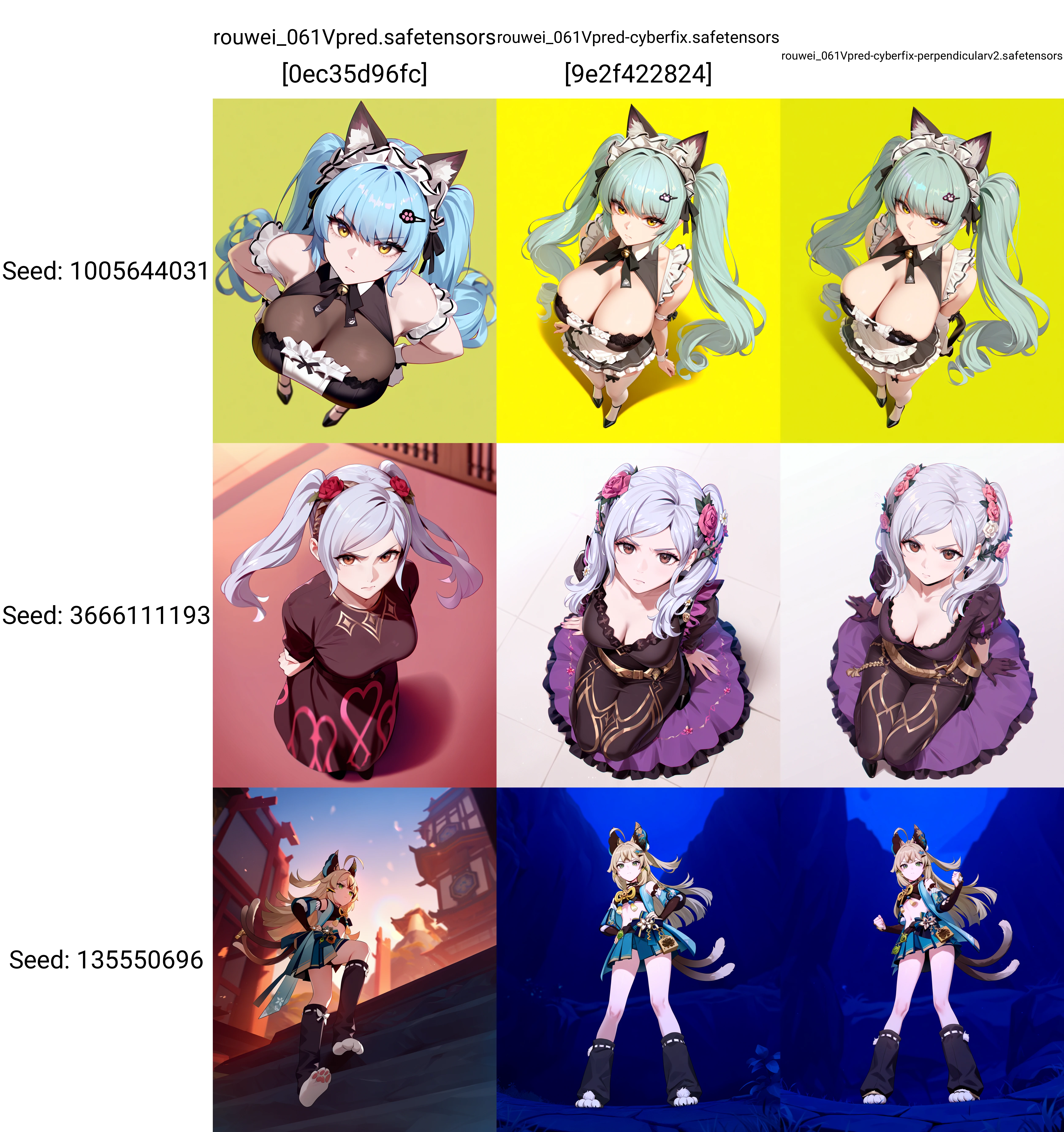 cyberrealisticXL_v31 is a general purpose model without any specific style, just like stable-diffusion-xl-base-1.0, and so if you replace the stable-diffusion-xl-base-1.0 weights with cyberrealisticXL_v31 weights in any model, it shouldn't change the model's style and its knowledge much. But at the same time, cyberrealisticXL_v31 has much better ??????? knowledge than sd-xl-1.0, and because of this, it should greatly improve the ??????? knowledge of any model, and in the case of NoobaiCyberFix, it worked exactly as I expected. In theory, you can use this recipe to improve the ??????? knowledge of any model that needs it