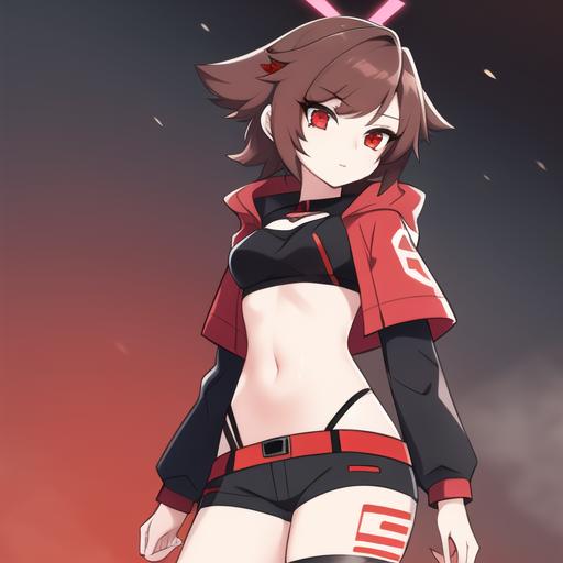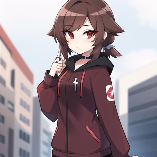 to get the best results add: crydia, 1 girl, red eyes,